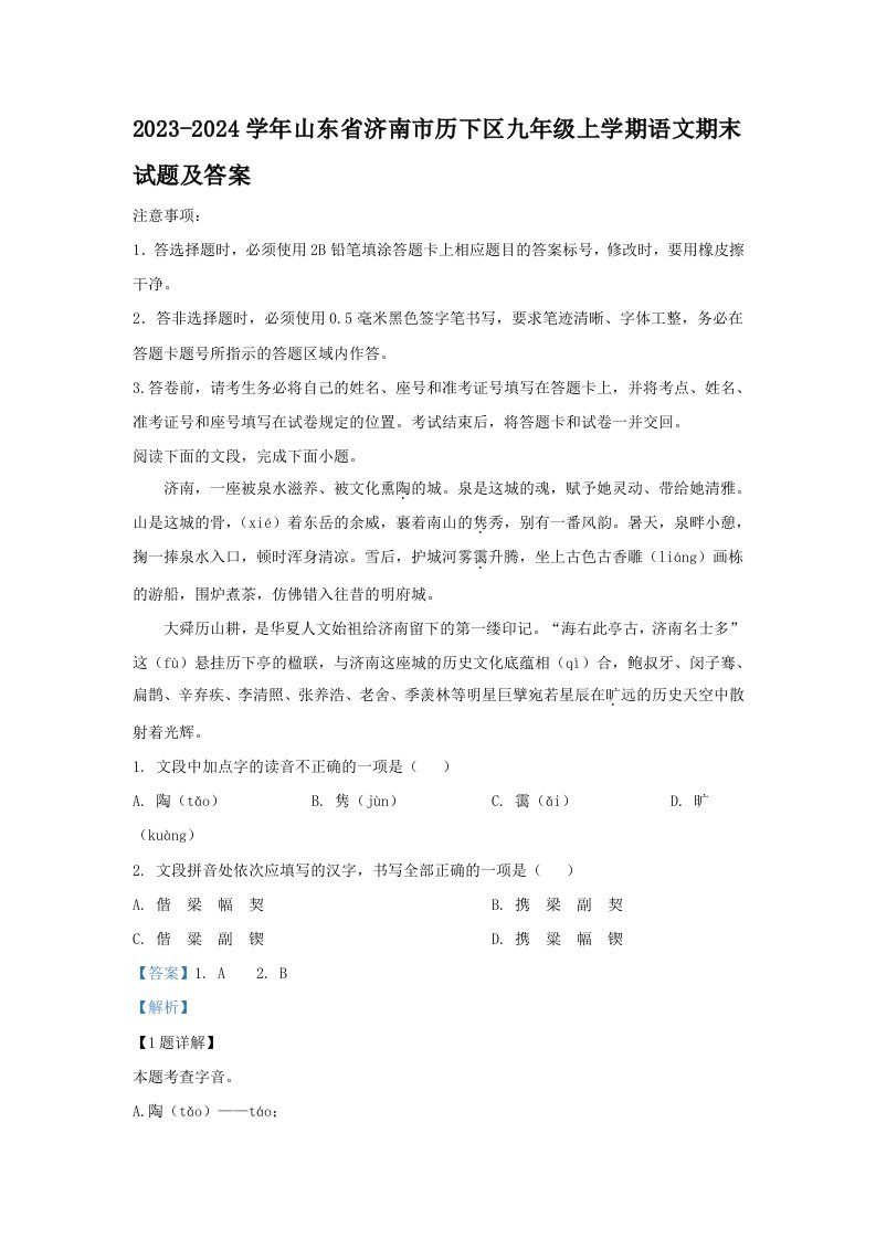 当前位置: 首页初中资源初中九年级正文 2023-2024学年山东省济南市历下区九年级上学期语文期末试题及答案(Word版)_共20页 初中九年级 4 天前 0 0 10 以上为部分内容预览,如需源文档请登录您的会员账号进行下载! 声明:本站所有文章,如无特殊说明或标注,均为本站原创发布。任何个人或组织,在未征得本站同意时,禁止复制、盗用、采集、发布本站内容到任何网站、书籍等各类媒体平台。如若本站内容侵犯了原著者的合法权益,可联系我们进行处理。 尚学资源永久会员 打赏 收藏 海报 链接