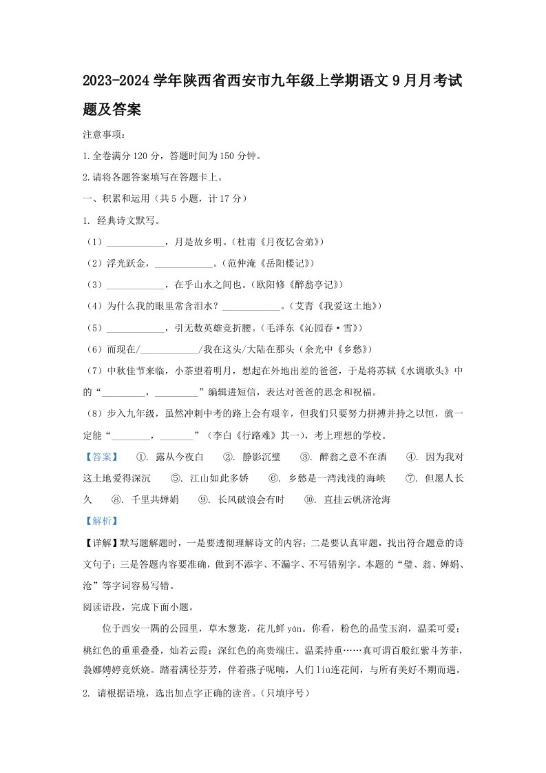 当前位置: 首页初中资源初中九年级正文 2023-2024学年陕西省西安市九年级上学期语文9月月考试题及答案(Word版)_共18页 初中九年级 5 天前 0 0 10 以上为部分内容预览,如需源文档请登录您的会员账号进行下载! 声明:本站所有文章,如无特殊说明或标注,均为本站原创发布。任何个人或组织,在未征得本站同意时,禁止复制、盗用、采集、发布本站内容到任何网站、书籍等各类媒体平台。如若本站内容侵犯了原著者的合法权益,可联系我们进行处理。 尚学资源永久会员 打赏 收藏 海报 链接