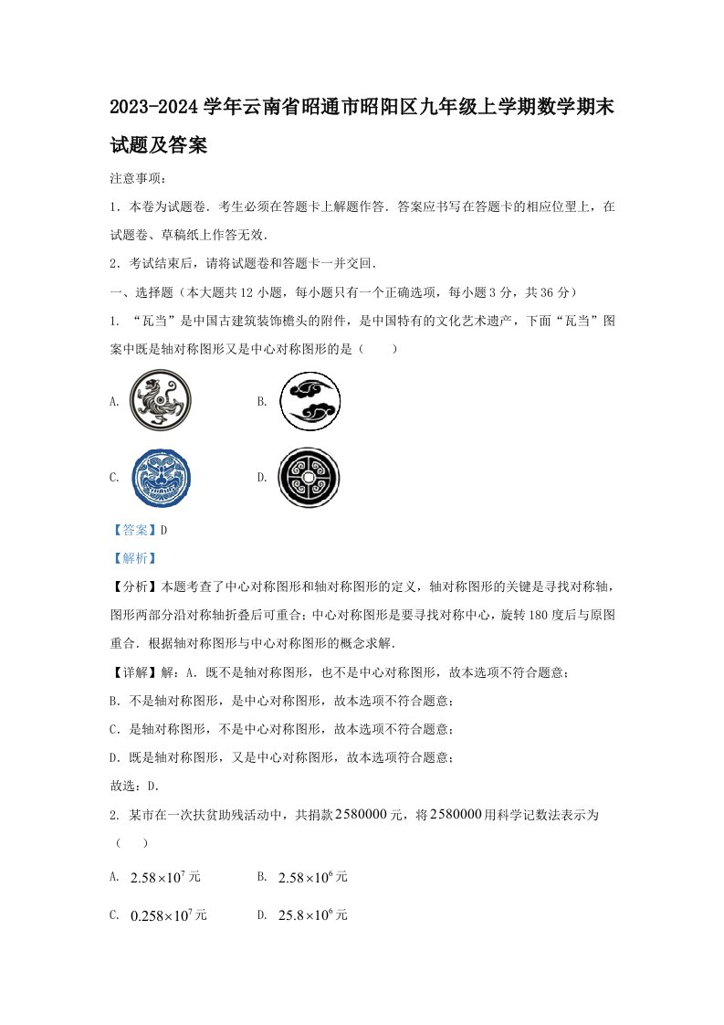 当前位置: 首页初中资源初中九年级正文 2023-2024学年云南省昭通市昭阳区九年级上学期数学期末试题及答案(Word版)_共19页 初中九年级 4 天前 0 0 10 以上为部分内容预览,如需源文档请登录您的会员账号进行下载! 声明:本站所有文章,如无特殊说明或标注,均为本站原创发布。任何个人或组织,在未征得本站同意时,禁止复制、盗用、采集、发布本站内容到任何网站、书籍等各类媒体平台。如若本站内容侵犯了原著者的合法权益,可联系我们进行处理。 尚学资源永久会员 打赏 收藏 海报 链接