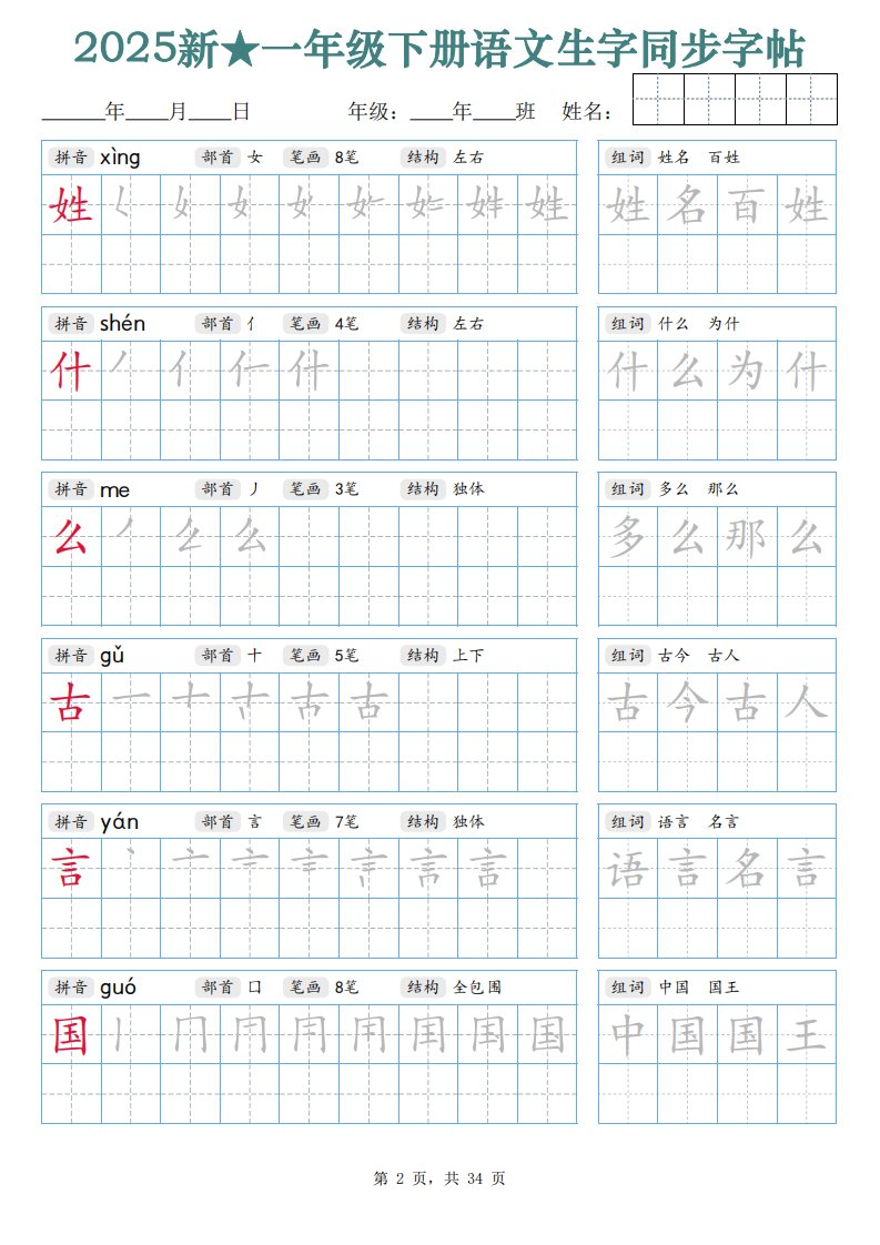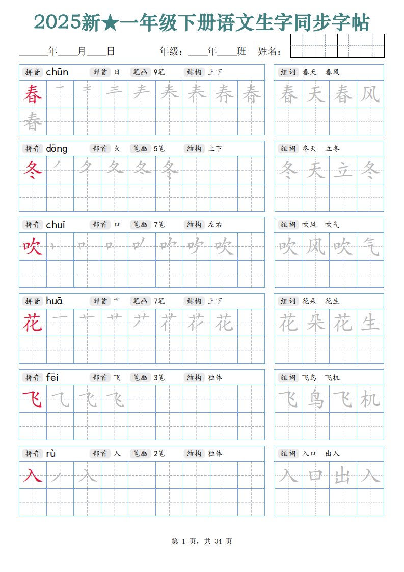 当前位置: 首页小学资源小学一年级正文 【25新一下语文生字同步字帖(笔顺组词完整34页)拼音部首笔画结构_共34页 小学一年级 2 周前 0 0 15 以上为部分内容预览,如需源文档请登录您的会员账号进行下载! 声明:本站所有文章,如无特殊说明或标注,均为本站原创发布。任何个人或组织,在未征得本站同意时,禁止复制、盗用、采集、发布本站内容到任何网站、书籍等各类媒体平台。如若本站内容侵犯了原著者的合法权益,可联系我们进行处理。 尚学资源永久会员 打赏 收藏 海报 链接