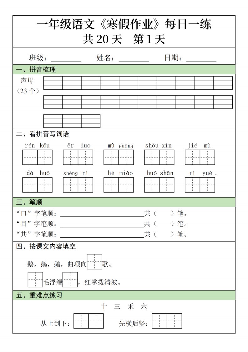 当前位置: 首页小学资源小学一年级正文 一下语文寒假作业每日一练20天(20页)_共20页 小学一年级 2 周前 0 0 10 以上为部分内容预览,如需源文档请登录您的会员账号进行下载! 声明:本站所有文章,如无特殊说明或标注,均为本站原创发布。任何个人或组织,在未征得本站同意时,禁止复制、盗用、采集、发布本站内容到任何网站、书籍等各类媒体平台。如若本站内容侵犯了原著者的合法权益,可联系我们进行处理。 尚学资源永久会员 打赏 收藏 海报 链接