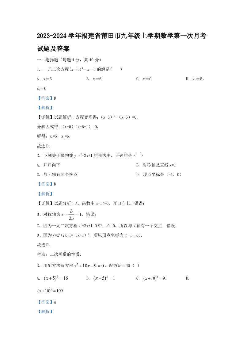 当前位置: 首页初中资源初中九年级正文 2023-2024学年福建省莆田市九年级上学期数学第一次月考试题及答案(Word版)_共21页 初中九年级 5 天前 0 0 15 以上为部分内容预览,如需源文档请登录您的会员账号进行下载! 声明:本站所有文章,如无特殊说明或标注,均为本站原创发布。任何个人或组织,在未征得本站同意时,禁止复制、盗用、采集、发布本站内容到任何网站、书籍等各类媒体平台。如若本站内容侵犯了原著者的合法权益,可联系我们进行处理。 尚学资源永久会员 打赏 收藏 海报 链接