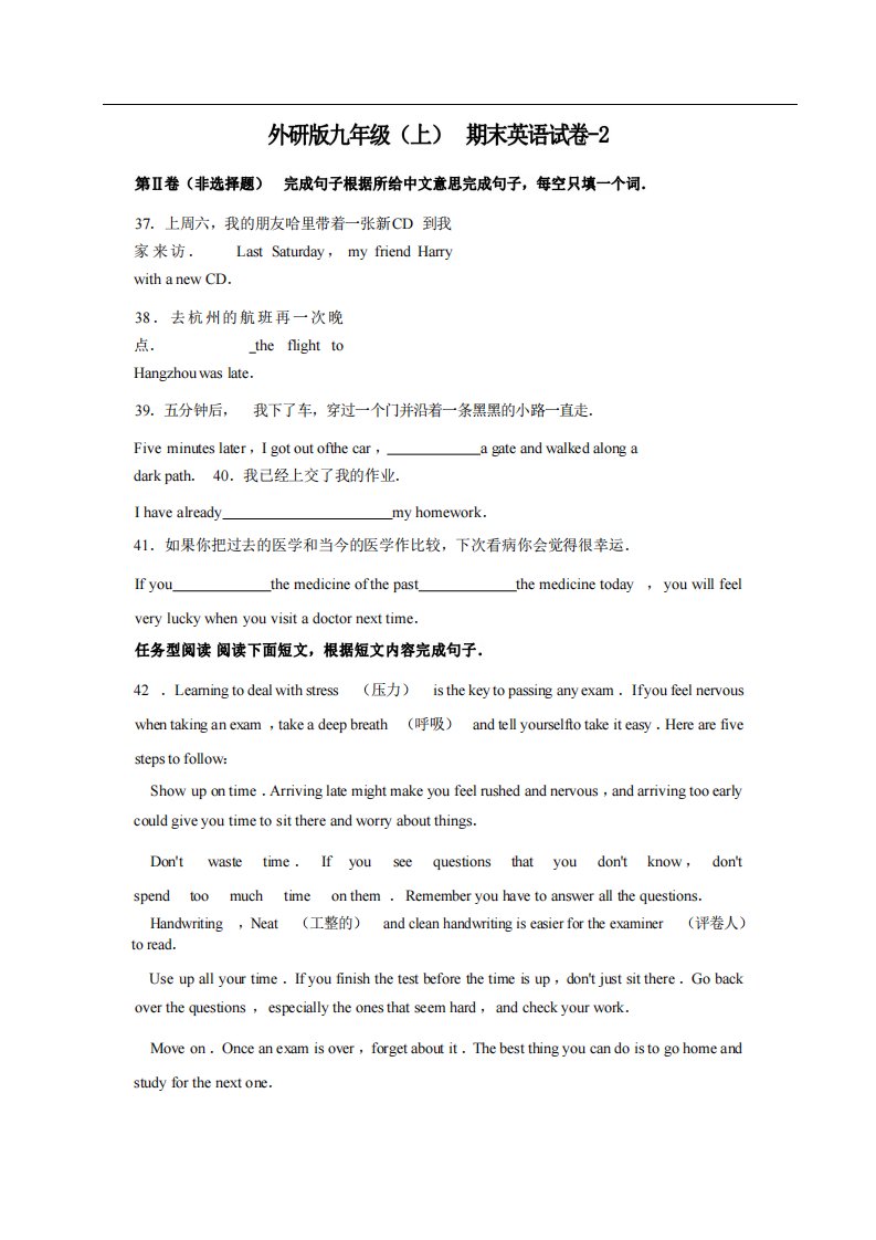 当前位置: 首页初中资源初中九年级正文 九年级(上)英语期末试卷4-2卷外研版_共8页 初中九年级 4 天前 0 0 5 以上为部分内容预览,如需源文档请登录您的会员账号进行下载! 声明:本站所有文章,如无特殊说明或标注,均为本站原创发布。任何个人或组织,在未征得本站同意时,禁止复制、盗用、采集、发布本站内容到任何网站、书籍等各类媒体平台。如若本站内容侵犯了原著者的合法权益,可联系我们进行处理。 尚学资源永久会员 打赏 收藏 海报 链接