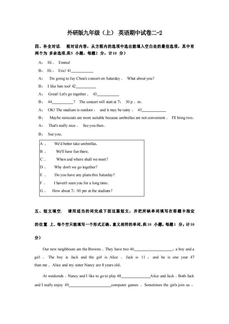 当前位置: 首页初中资源初中九年级正文 九年级(上)英语期中试卷2-2卷外研版_共4页 初中九年级 4 天前 0 0 5 以上为部分内容预览,如需源文档请登录您的会员账号进行下载! 声明:本站所有文章,如无特殊说明或标注,均为本站原创发布。任何个人或组织,在未征得本站同意时,禁止复制、盗用、采集、发布本站内容到任何网站、书籍等各类媒体平台。如若本站内容侵犯了原著者的合法权益,可联系我们进行处理。 尚学资源永久会员 打赏 收藏 海报 链接