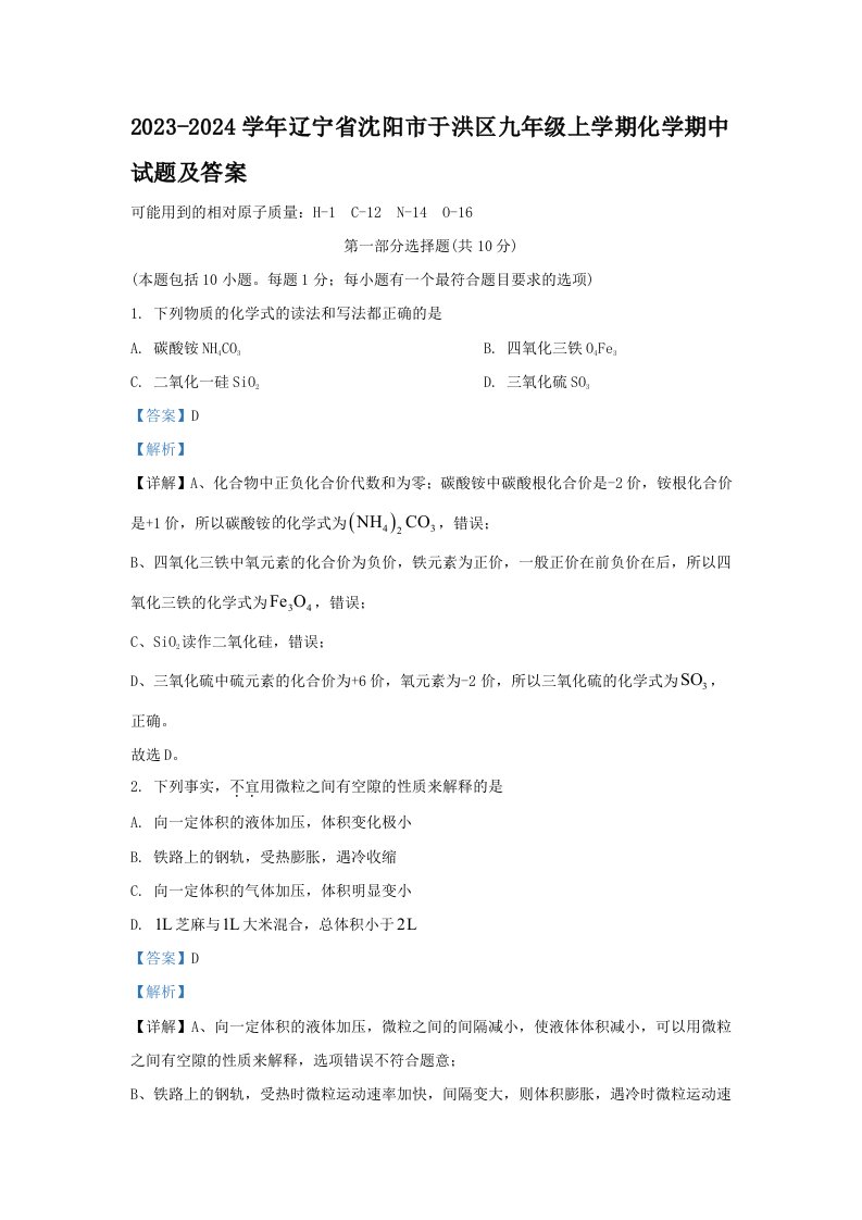 当前位置: 首页初中资源初中九年级正文 2023-2024学年辽宁省沈阳市于洪区九年级上学期化学期中试题及答案(Word版)_共13页 初中九年级 4 天前 0 0 10 以上为部分内容预览,如需源文档请登录您的会员账号进行下载! 声明:本站所有文章,如无特殊说明或标注,均为本站原创发布。任何个人或组织,在未征得本站同意时,禁止复制、盗用、采集、发布本站内容到任何网站、书籍等各类媒体平台。如若本站内容侵犯了原著者的合法权益,可联系我们进行处理。 尚学资源永久会员 打赏 收藏 海报 链接