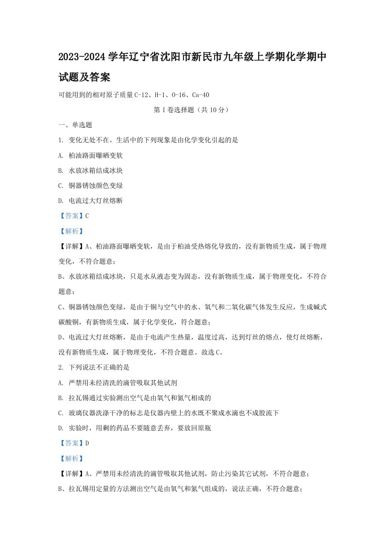 当前位置: 首页初中资源初中九年级正文 2023-2024学年辽宁省沈阳市新民市九年级上学期化学期中试题及答案(Word版)_共17页 初中九年级 4 天前 0 0 10 以上为部分内容预览,如需源文档请登录您的会员账号进行下载! 声明:本站所有文章,如无特殊说明或标注,均为本站原创发布。任何个人或组织,在未征得本站同意时,禁止复制、盗用、采集、发布本站内容到任何网站、书籍等各类媒体平台。如若本站内容侵犯了原著者的合法权益,可联系我们进行处理。 尚学资源永久会员 打赏 收藏 海报 链接