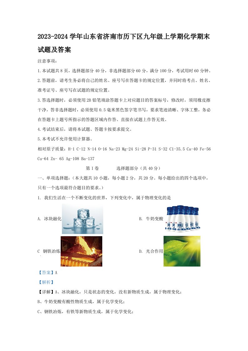 当前位置: 首页初中资源初中九年级正文 2023-2024学年山东省济南市历下区九年级上学期化学期末试题及答案(Word版)_共24页 初中九年级 4 天前 0 0 15 以上为部分内容预览,如需源文档请登录您的会员账号进行下载! 声明:本站所有文章,如无特殊说明或标注,均为本站原创发布。任何个人或组织,在未征得本站同意时,禁止复制、盗用、采集、发布本站内容到任何网站、书籍等各类媒体平台。如若本站内容侵犯了原著者的合法权益,可联系我们进行处理。 尚学资源永久会员 打赏 收藏 海报 链接