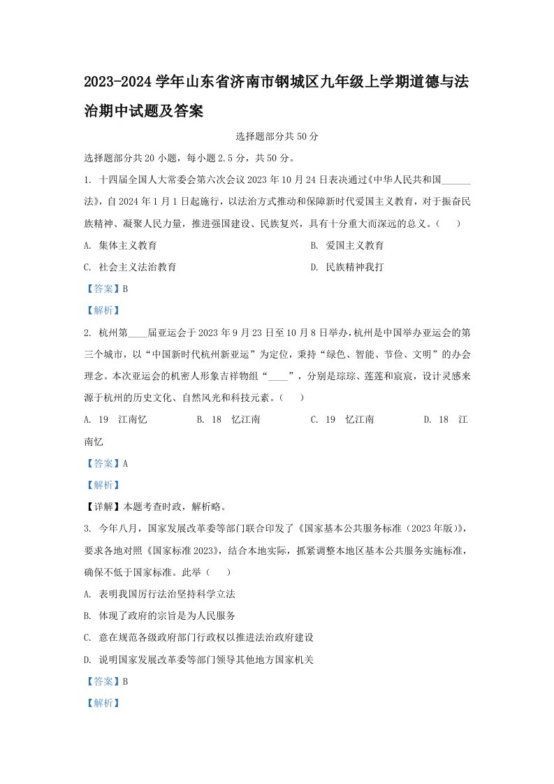 当前位置: 首页初中资源初中九年级正文 2023-2024学年山东省济南市钢城区九年级上学期道德与法治期中试题及答案(Word版)_共18页 初中九年级 4 天前 0 0 10 以上为部分内容预览,如需源文档请登录您的会员账号进行下载! 声明:本站所有文章,如无特殊说明或标注,均为本站原创发布。任何个人或组织,在未征得本站同意时,禁止复制、盗用、采集、发布本站内容到任何网站、书籍等各类媒体平台。如若本站内容侵犯了原著者的合法权益,可联系我们进行处理。 尚学资源永久会员 打赏 收藏 海报 链接