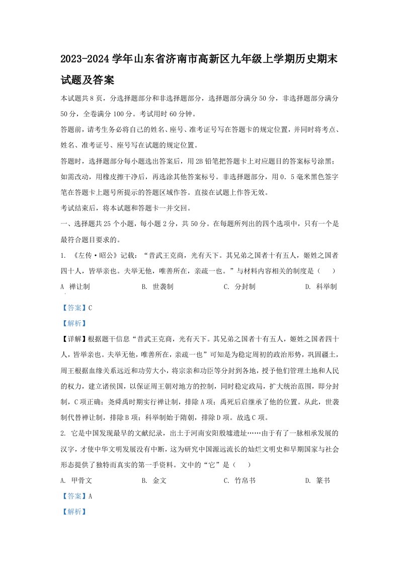 当前位置: 首页初中资源初中九年级正文 2023-2024学年山东省济南市高新区九年级上学期历史期末试题及答案(Word版)_共17页 初中九年级 4 天前 0 0 10 以上为部分内容预览,如需源文档请登录您的会员账号进行下载! 声明:本站所有文章,如无特殊说明或标注,均为本站原创发布。任何个人或组织,在未征得本站同意时,禁止复制、盗用、采集、发布本站内容到任何网站、书籍等各类媒体平台。如若本站内容侵犯了原著者的合法权益,可联系我们进行处理。 尚学资源永久会员 打赏 收藏 海报 链接