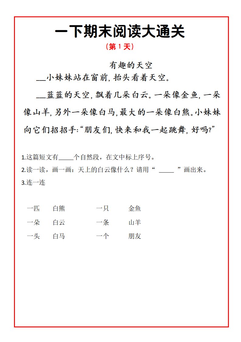 当前位置: 首页小学资源小学一年级正文 一下期末阅读通关15天_共15页 小学一年级 2 周前 0 0 10 以上为部分内容预览,如需源文档请登录您的会员账号进行下载! 声明:本站所有文章,如无特殊说明或标注,均为本站原创发布。任何个人或组织,在未征得本站同意时,禁止复制、盗用、采集、发布本站内容到任何网站、书籍等各类媒体平台。如若本站内容侵犯了原著者的合法权益,可联系我们进行处理。 尚学资源永久会员 打赏 收藏 海报 链接