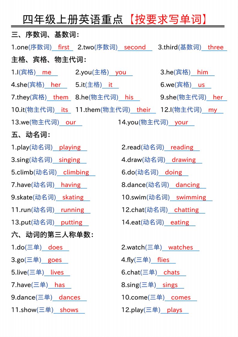 当前位置: 首页小学资源小学四年级正文 四年级上人教PEP版英语重点按要求写单词(答案)_共4页 小学四年级 3 天前 0 0 5 以上为部分内容预览,如需源文档请登录您的会员账号进行下载! 声明:本站所有文章,如无特殊说明或标注,均为本站原创发布。任何个人或组织,在未征得本站同意时,禁止复制、盗用、采集、发布本站内容到任何网站、书籍等各类媒体平台。如若本站内容侵犯了原著者的合法权益,可联系我们进行处理。 尚学资源永久会员 打赏 收藏 海报 链接