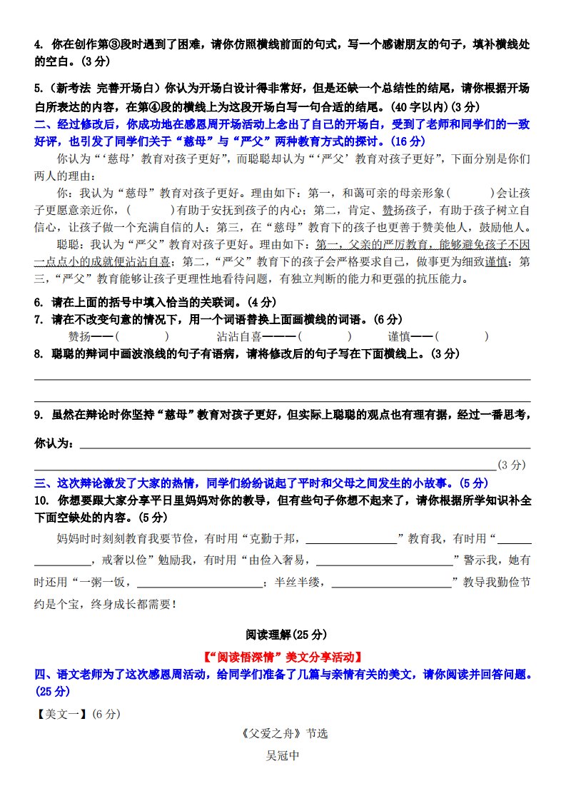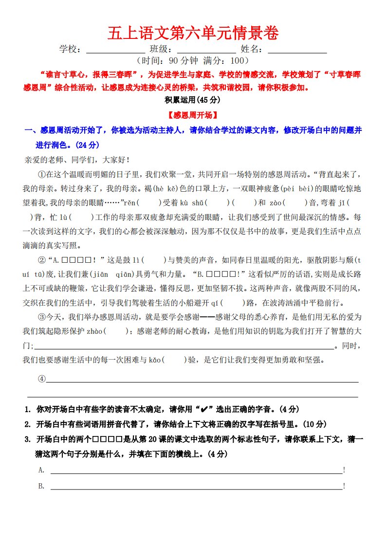 当前位置: 首页小学资源小学五年级正文 五上语文第六单元情景卷+答案8页_共8页 小学五年级 3 天前 0 0 5 以上为部分内容预览,如需源文档请登录您的会员账号进行下载! 声明:本站所有文章,如无特殊说明或标注,均为本站原创发布。任何个人或组织,在未征得本站同意时,禁止复制、盗用、采集、发布本站内容到任何网站、书籍等各类媒体平台。如若本站内容侵犯了原著者的合法权益,可联系我们进行处理。 尚学资源永久会员 打赏 收藏 海报 链接
