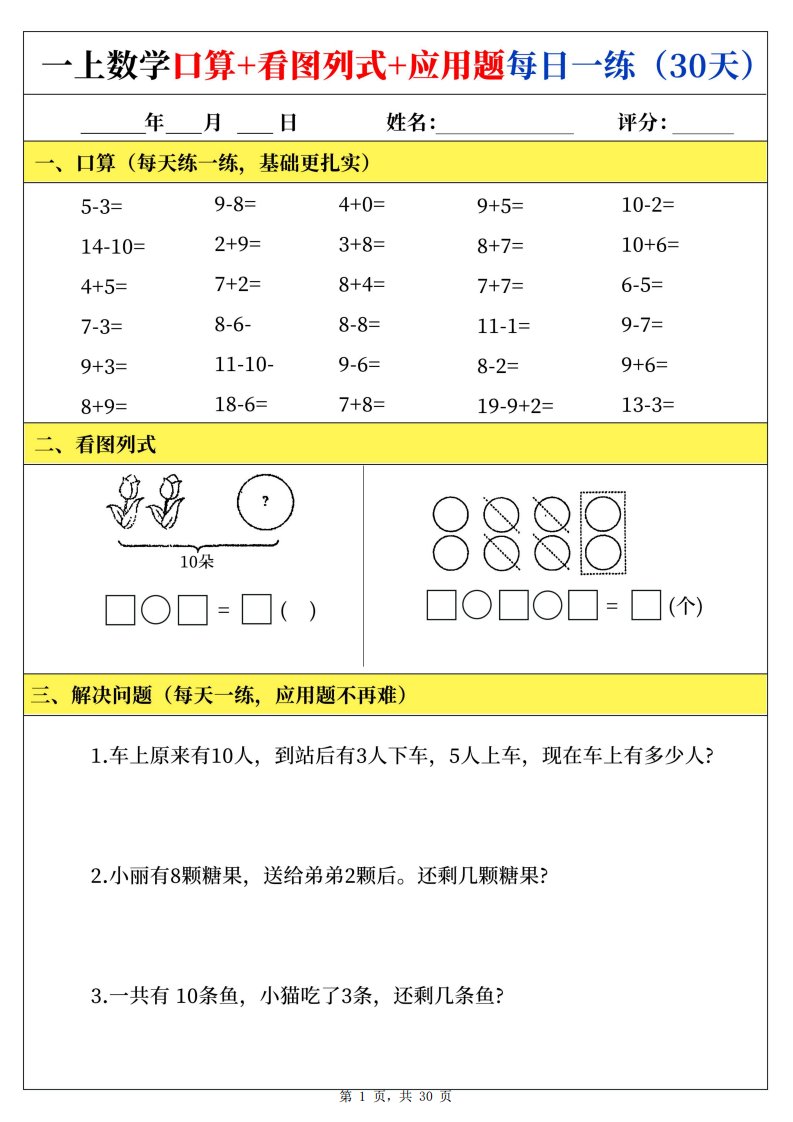 当前位置: 首页小学资源小学一年级正文 新一上数学口算+看图列式+应用题每日一练(30页)_共30页 小学一年级 2 天前 0 0 15 以上为部分内容预览,如需源文档请登录您的会员账号进行下载! 声明:本站所有文章,如无特殊说明或标注,均为本站原创发布。任何个人或组织,在未征得本站同意时,禁止复制、盗用、采集、发布本站内容到任何网站、书籍等各类媒体平台。如若本站内容侵犯了原著者的合法权益,可联系我们进行处理。 尚学资源永久会员 打赏 收藏 海报 链接