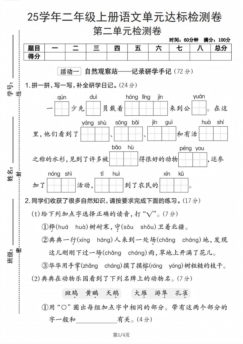 当前位置: 首页小学资源小学二年级正文 25学年二上语文第二单元达标检测卷-一群少先队(含答案5页)_共5页 小学二年级 22 小时前 0 0 5 以上为部分内容预览,如需源文档请登录您的会员账号进行下载! 声明:本站所有文章,如无特殊说明或标注,均为本站原创发布。任何个人或组织,在未征得本站同意时,禁止复制、盗用、采集、发布本站内容到任何网站、书籍等各类媒体平台。如若本站内容侵犯了原著者的合法权益,可联系我们进行处理。 尚学资源永久会员 打赏 收藏 海报 链接