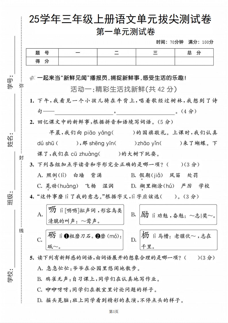 当前位置: 首页小学资源小学三年级正文 25学年三上语文第一单元拔尖测试卷(含答案5页)_共5页 小学三年级 21 小时前 0 0 5 以上为部分内容预览,如需源文档请登录您的会员账号进行下载! 声明:本站所有文章,如无特殊说明或标注,均为本站原创发布。任何个人或组织,在未征得本站同意时,禁止复制、盗用、采集、发布本站内容到任何网站、书籍等各类媒体平台。如若本站内容侵犯了原著者的合法权益,可联系我们进行处理。 尚学资源永久会员 打赏 收藏 海报 链接
