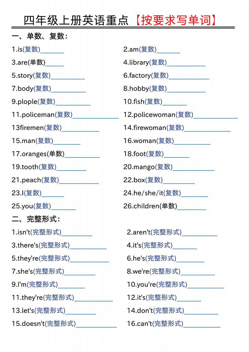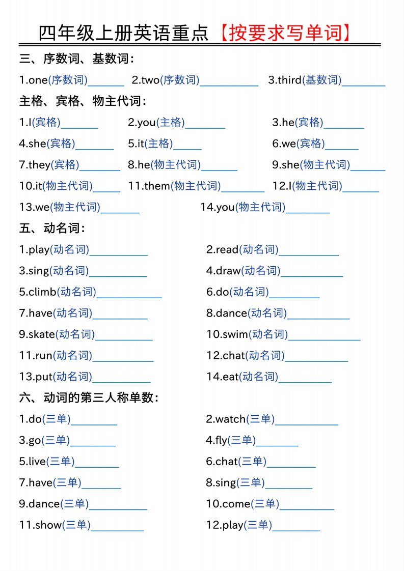 当前位置: 首页小学资源小学四年级正文 四年级上人教PEP版英语重点按要求写单词(空白)_共4页 小学四年级 19 小时前 0 0 5 以上为部分内容预览,如需源文档请登录您的会员账号进行下载! 声明:本站所有文章,如无特殊说明或标注,均为本站原创发布。任何个人或组织,在未征得本站同意时,禁止复制、盗用、采集、发布本站内容到任何网站、书籍等各类媒体平台。如若本站内容侵犯了原著者的合法权益,可联系我们进行处理。 尚学资源永久会员 打赏 收藏 海报 链接