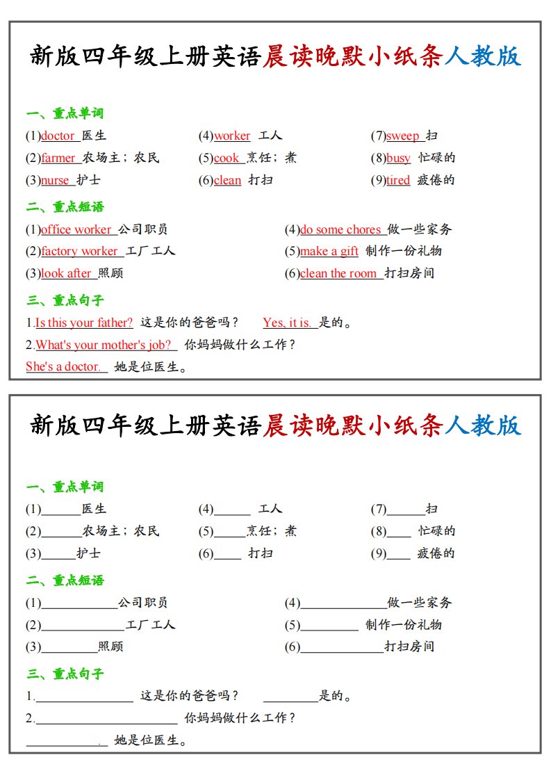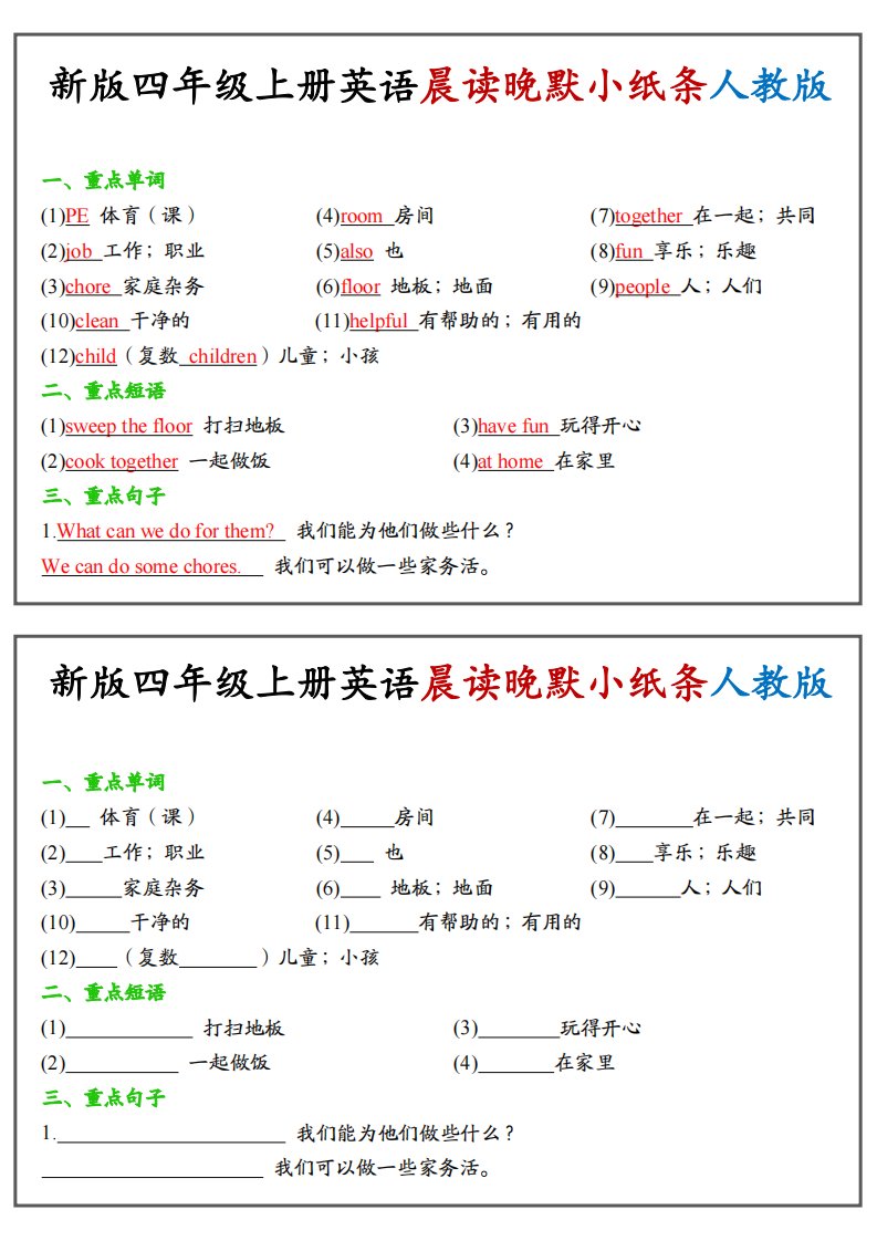 当前位置: 首页小学资源小学四年级正文 四年级上人教PEP版英语晨读晚默小纸条_共13页 小学四年级 19 小时前 0 0 10 以上为部分内容预览,如需源文档请登录您的会员账号进行下载! 声明:本站所有文章,如无特殊说明或标注,均为本站原创发布。任何个人或组织,在未征得本站同意时,禁止复制、盗用、采集、发布本站内容到任何网站、书籍等各类媒体平台。如若本站内容侵犯了原著者的合法权益,可联系我们进行处理。 尚学资源永久会员 打赏 收藏 海报 链接