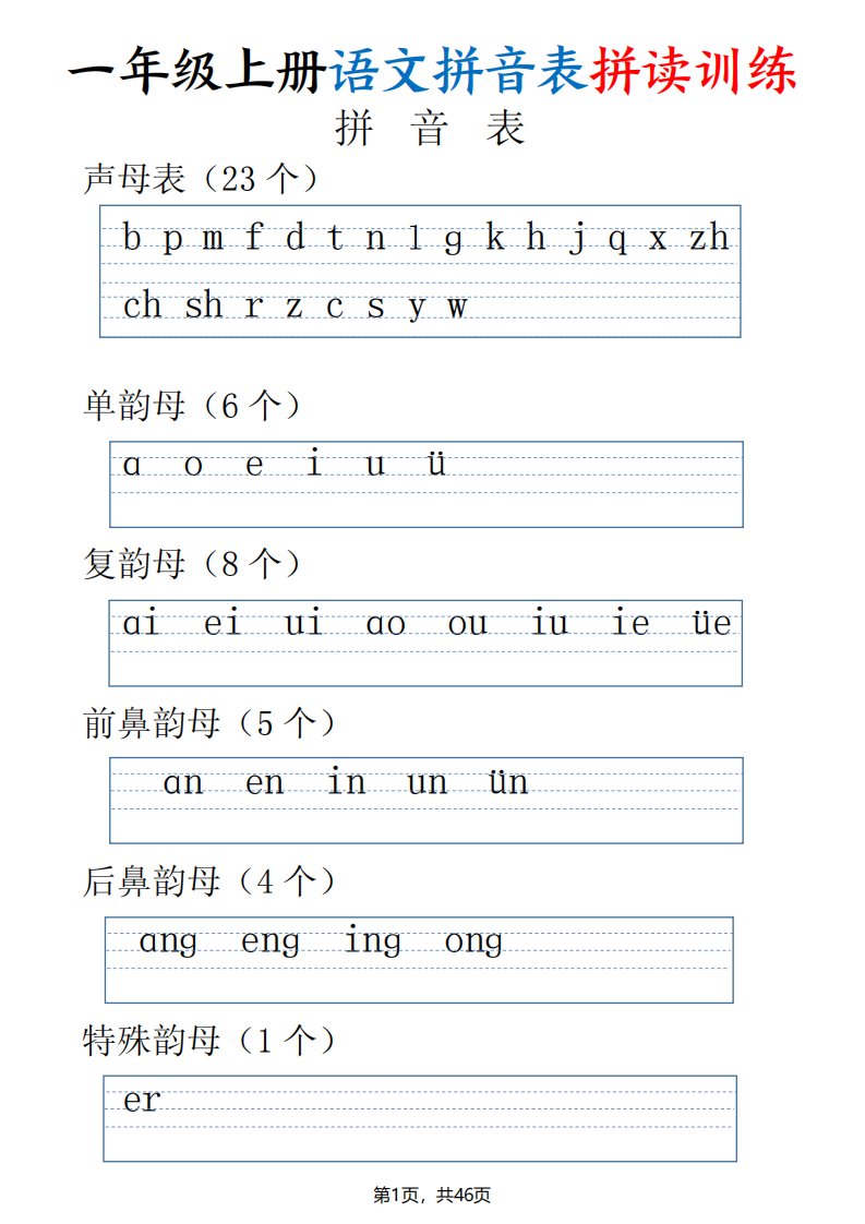 当前位置: 首页小学资源小学一年级正文 一年级上册语文拼音表拼读训练(全46页)_共46页 小学一年级 2 小时前 0 0 15 以上为部分内容预览,如需源文档请登录您的会员账号进行下载! 声明:本站所有文章,如无特殊说明或标注,均为本站原创发布。任何个人或组织,在未征得本站同意时,禁止复制、盗用、采集、发布本站内容到任何网站、书籍等各类媒体平台。如若本站内容侵犯了原著者的合法权益,可联系我们进行处理。 尚学资源永久会员 打赏 收藏 海报 链接