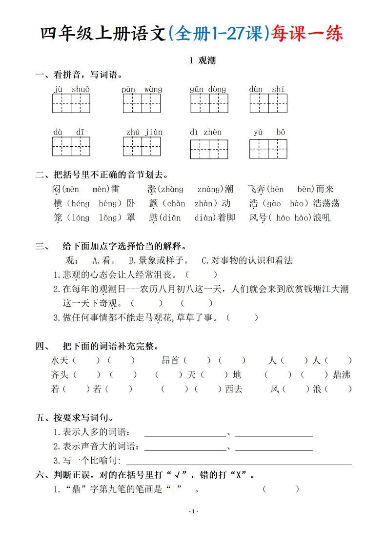 当前位置: 首页小学资源小学四年级正文 四上语文(全册1-27课)每课一练(含答案119页)_共119页 小学四年级 2 小时前 0 0 15 以上为部分内容预览,如需源文档请登录您的会员账号进行下载! 声明:本站所有文章,如无特殊说明或标注,均为本站原创发布。任何个人或组织,在未征得本站同意时,禁止复制、盗用、采集、发布本站内容到任何网站、书籍等各类媒体平台。如若本站内容侵犯了原著者的合法权益,可联系我们进行处理。 尚学资源永久会员 打赏 收藏 海报 链接