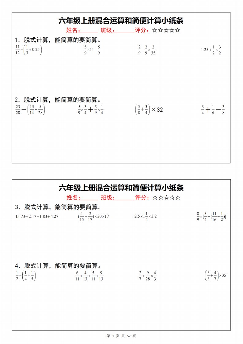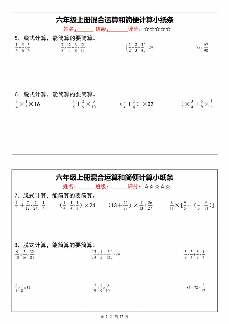 当前位置: 首页小学资源小学六年级正文 六上数学混合运算和简便计算小纸条(通用)_共57页 小学六年级 2 小时前 0 0 15 以上为部分内容预览,如需源文档请登录您的会员账号进行下载! 声明:本站所有文章,如无特殊说明或标注,均为本站原创发布。任何个人或组织,在未征得本站同意时,禁止复制、盗用、采集、发布本站内容到任何网站、书籍等各类媒体平台。如若本站内容侵犯了原著者的合法权益,可联系我们进行处理。 尚学资源永久会员 打赏 收藏 海报 链接