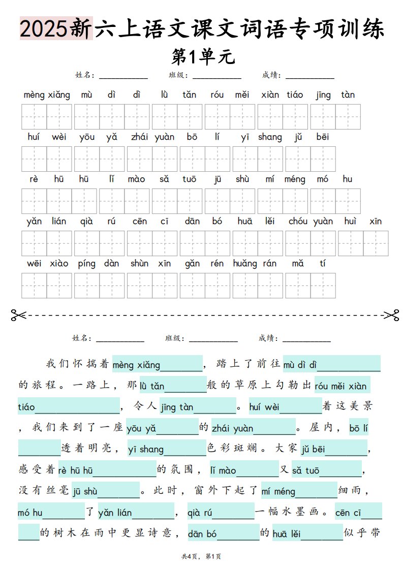 当前位置: 首页小学资源小学六年级正文 25新六上语文1-8单元词语专项训练(看拼音写词语、情境词语默写)26页_共26页 小学六年级 2 小时前 0 0 15 以上为部分内容预览,如需源文档请登录您的会员账号进行下载! 声明:本站所有文章,如无特殊说明或标注,均为本站原创发布。任何个人或组织,在未征得本站同意时,禁止复制、盗用、采集、发布本站内容到任何网站、书籍等各类媒体平台。如若本站内容侵犯了原著者的合法权益,可联系我们进行处理。 尚学资源永久会员 打赏 收藏 海报 链接