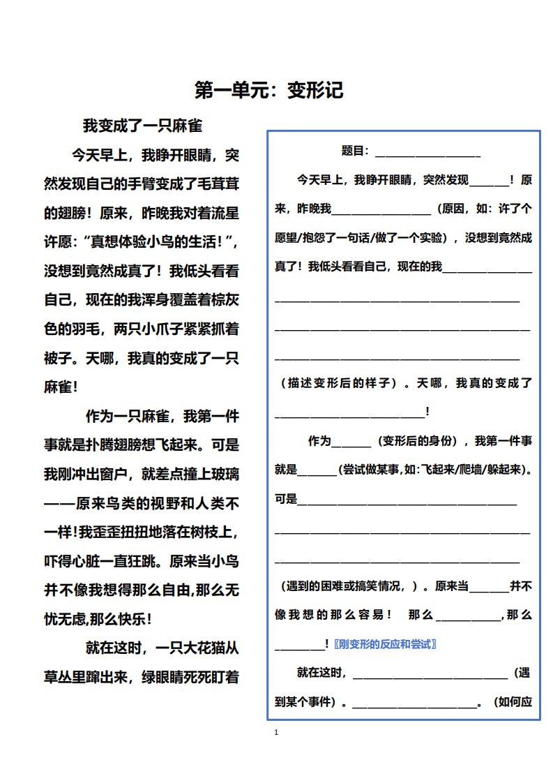 当前位置: 首页小学资源小学六年级正文 六年级上册语文第1-8单元作文支架_共33页 小学六年级 3 小时前 0 0 15 以上为部分内容预览,如需源文档请登录您的会员账号进行下载! 声明:本站所有文章,如无特殊说明或标注,均为本站原创发布。任何个人或组织,在未征得本站同意时,禁止复制、盗用、采集、发布本站内容到任何网站、书籍等各类媒体平台。如若本站内容侵犯了原著者的合法权益,可联系我们进行处理。 尚学资源永久会员 打赏 收藏 海报 链接