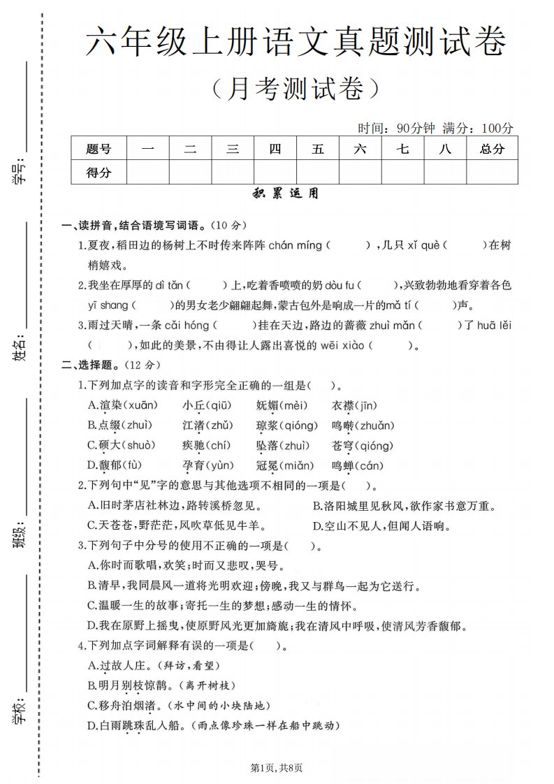当前位置: 首页小学资源小学六年级正文 以上为部分内容预览,如需源文档请登录您的会员账号进行下载! 声明:本站所有文章,如无特殊说明或标注,均为本站原创发布。任何个人或组织,在未征得本站同意时,禁止复制、盗用、采集、发布本站内容到任何网站、书籍等各类媒体平台。如若本站内容侵犯了原著者的合法权益,可联系我们进行处理。 尚学资源永久会员 打赏 收藏 海报 链接
