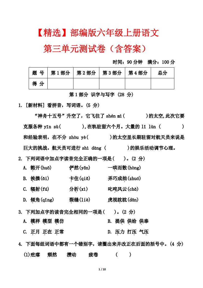 当前位置: 首页小学资源小学六年级正文 以上为部分内容预览,如需源文档请登录您的会员账号进行下载! 声明:本站所有文章,如无特殊说明或标注,均为本站原创发布。任何个人或组织,在未征得本站同意时,禁止复制、盗用、采集、发布本站内容到任何网站、书籍等各类媒体平台。如若本站内容侵犯了原著者的合法权益,可联系我们进行处理。 尚学资源永久会员 打赏 收藏 海报 链接