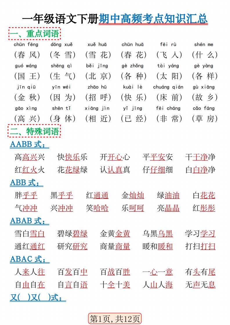 当前位置: 首页小学资源小学一年级正文 一年级语文下册期中高频考点知识汇总(1)(2)_共12页 小学一年级 2 周前 0 0 10 以上为部分内容预览,如需源文档请登录您的会员账号进行下载! 声明:本站所有文章,如无特殊说明或标注,均为本站原创发布。任何个人或组织,在未征得本站同意时,禁止复制、盗用、采集、发布本站内容到任何网站、书籍等各类媒体平台。如若本站内容侵犯了原著者的合法权益,可联系我们进行处理。 尚学资源永久会员 打赏 收藏 海报 链接