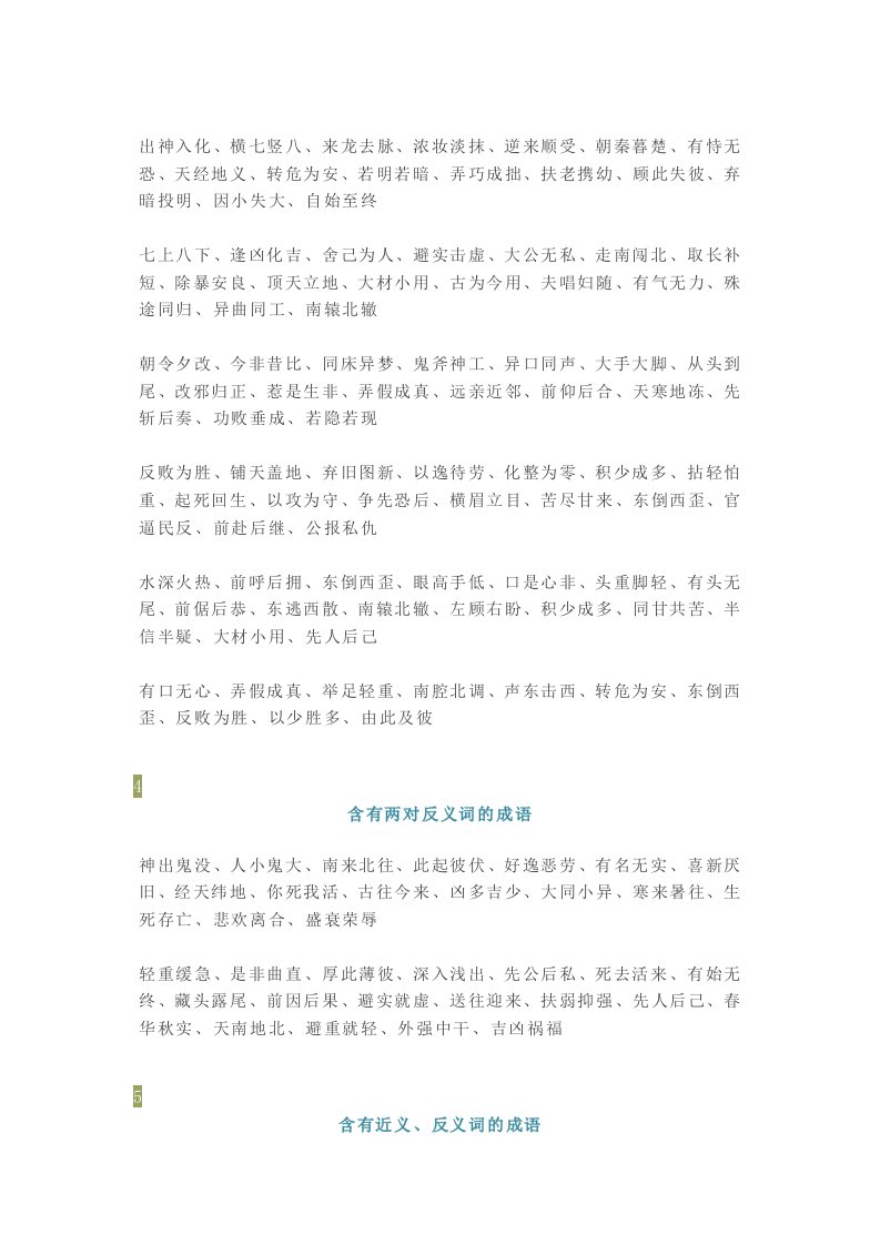 当前位置: 首页小学资源小学一年级正文 【小学语文】1-6年级所有近反义词成语大全,赶紧为孩子收藏!_共3页 小学一年级 2 周前 0 0 5 以上为部分内容预览,如需源文档请登录您的会员账号进行下载! 声明:本站所有文章,如无特殊说明或标注,均为本站原创发布。任何个人或组织,在未征得本站同意时,禁止复制、盗用、采集、发布本站内容到任何网站、书籍等各类媒体平台。如若本站内容侵犯了原著者的合法权益,可联系我们进行处理。 尚学资源永久会员 打赏 收藏 海报 链接