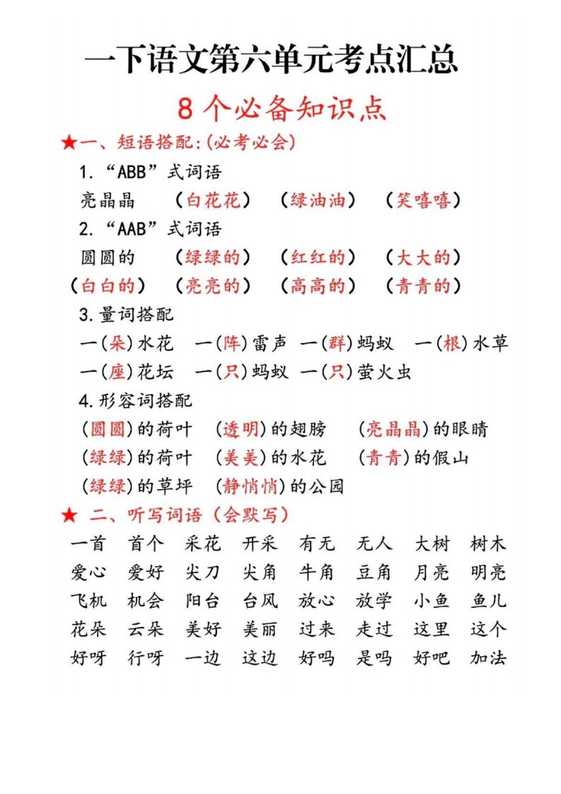 当前位置: 首页小学资源小学一年级正文 一下语文第六单元考点汇总_共8页 小学一年级 2 周前 0 0 5 以上为部分内容预览,如需源文档请登录您的会员账号进行下载! 声明:本站所有文章,如无特殊说明或标注,均为本站原创发布。任何个人或组织,在未征得本站同意时,禁止复制、盗用、采集、发布本站内容到任何网站、书籍等各类媒体平台。如若本站内容侵犯了原著者的合法权益,可联系我们进行处理。 尚学资源永久会员 打赏 收藏 海报 链接