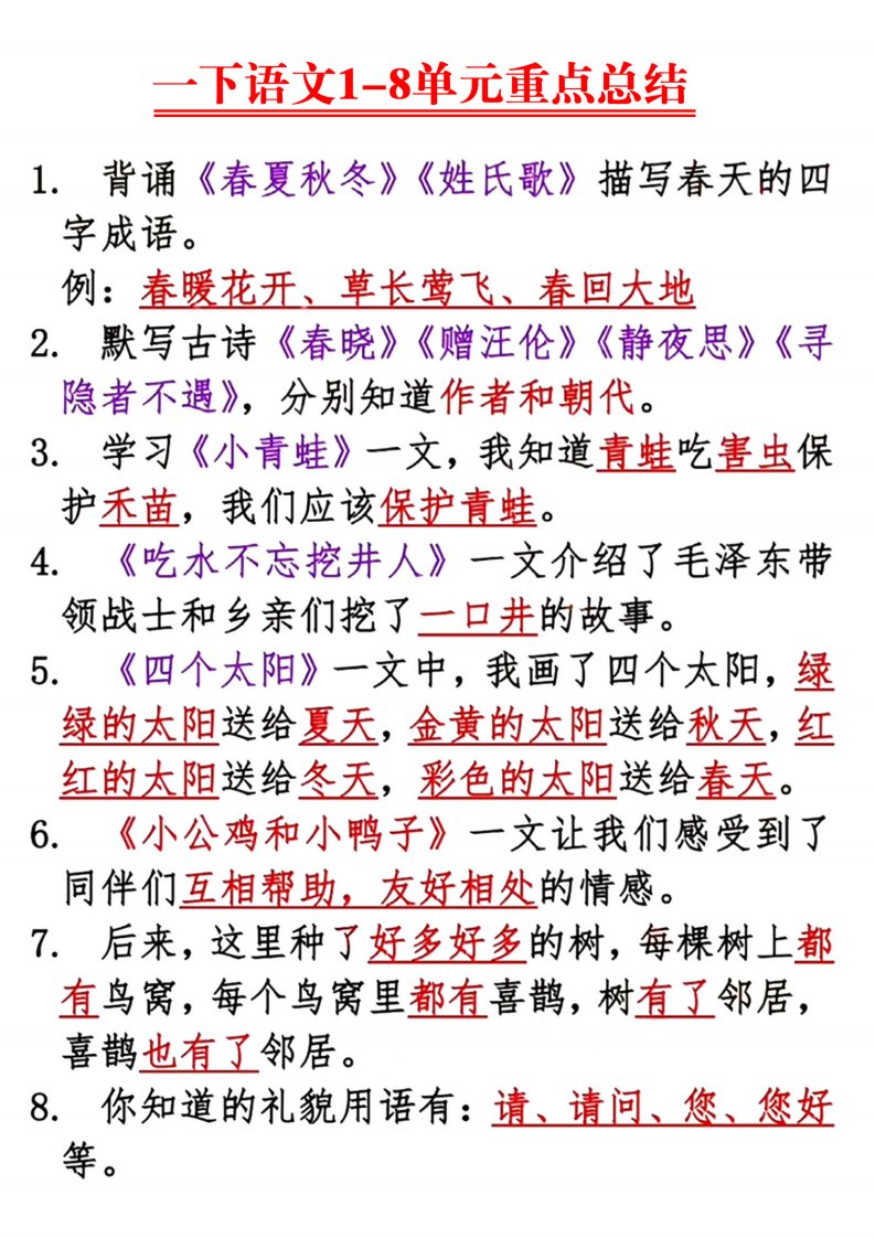 当前位置: 首页小学资源小学一年级正文 【1-8单元重点总结】一下语文_共2页 小学一年级 2 周前 0 0 5 以上为部分内容预览,如需源文档请登录您的会员账号进行下载! 声明:本站所有文章,如无特殊说明或标注,均为本站原创发布。任何个人或组织,在未征得本站同意时,禁止复制、盗用、采集、发布本站内容到任何网站、书籍等各类媒体平台。如若本站内容侵犯了原著者的合法权益,可联系我们进行处理。 尚学资源永久会员 打赏 收藏 海报 链接