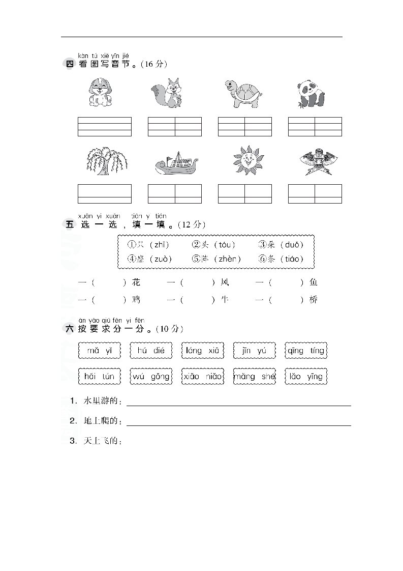 一上语文第三单元检测卷.1_共6页