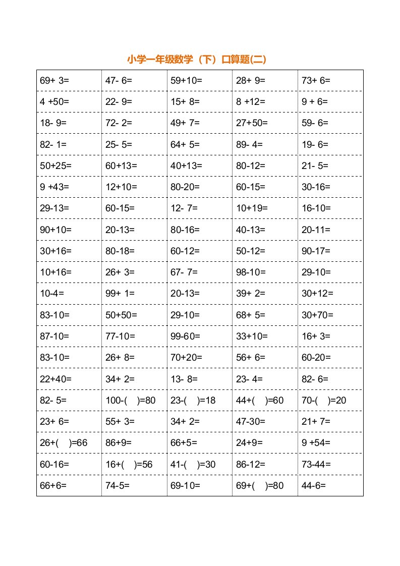 当前位置: 首页小学资源小学一年级正文 一年级下册数学暑假口算训练题18套(每页100道)_共19页 小学一年级 2 周前 0 0 10 以上为部分内容预览,如需源文档请登录您的会员账号进行下载! 声明:本站所有文章,如无特殊说明或标注,均为本站原创发布。任何个人或组织,在未征得本站同意时,禁止复制、盗用、采集、发布本站内容到任何网站、书籍等各类媒体平台。如若本站内容侵犯了原著者的合法权益,可联系我们进行处理。 尚学资源永久会员 打赏 收藏 海报 链接