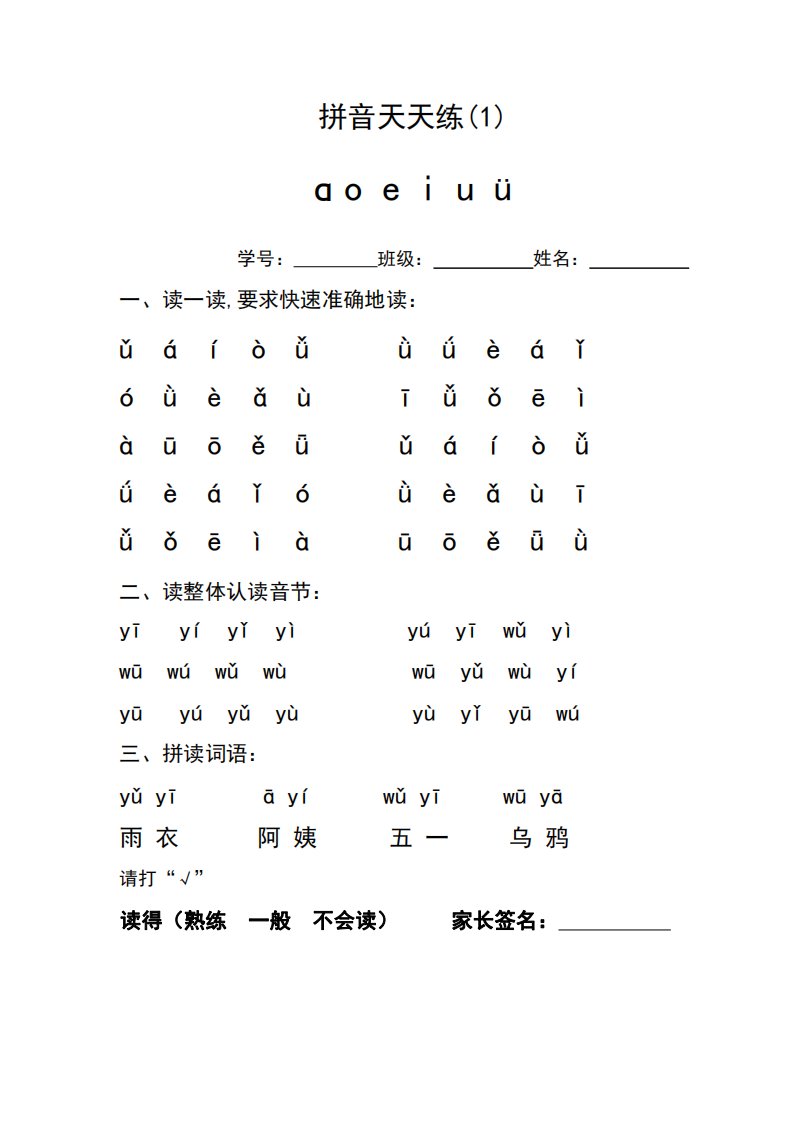 当前位置: 首页小学资源小学一年级正文 一年级上册语文拼音天天练_共15页 小学一年级 2 周前 0 0 10 以上为部分内容预览,如需源文档请登录您的会员账号进行下载! 声明:本站所有文章,如无特殊说明或标注,均为本站原创发布。任何个人或组织,在未征得本站同意时,禁止复制、盗用、采集、发布本站内容到任何网站、书籍等各类媒体平台。如若本站内容侵犯了原著者的合法权益,可联系我们进行处理。 尚学资源永久会员 打赏 收藏 海报 链接