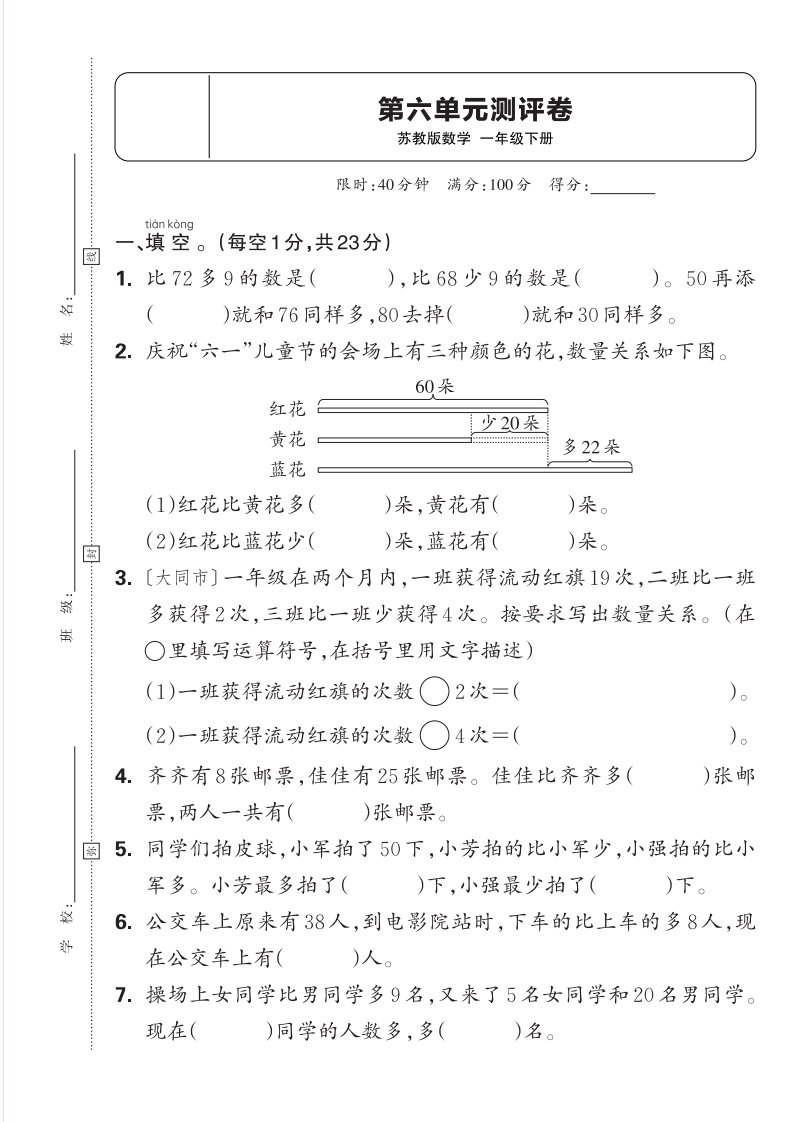 当前位置: 首页小学资源小学一年级正文 新一下苏教版数学第六单元测试卷(含答案)_共5页 小学一年级 2 周前 0 0 5 以上为部分内容预览,如需源文档请登录您的会员账号进行下载! 声明:本站所有文章,如无特殊说明或标注,均为本站原创发布。任何个人或组织,在未征得本站同意时,禁止复制、盗用、采集、发布本站内容到任何网站、书籍等各类媒体平台。如若本站内容侵犯了原著者的合法权益,可联系我们进行处理。 尚学资源永久会员 打赏 收藏 海报 链接