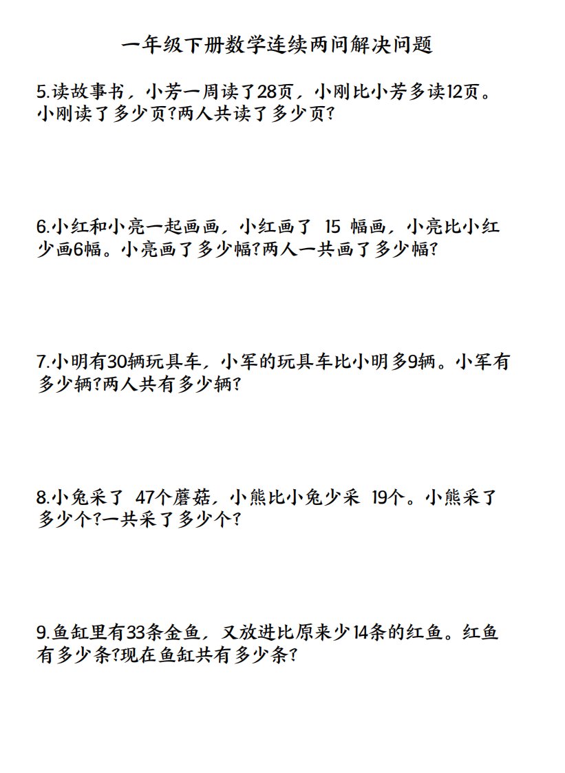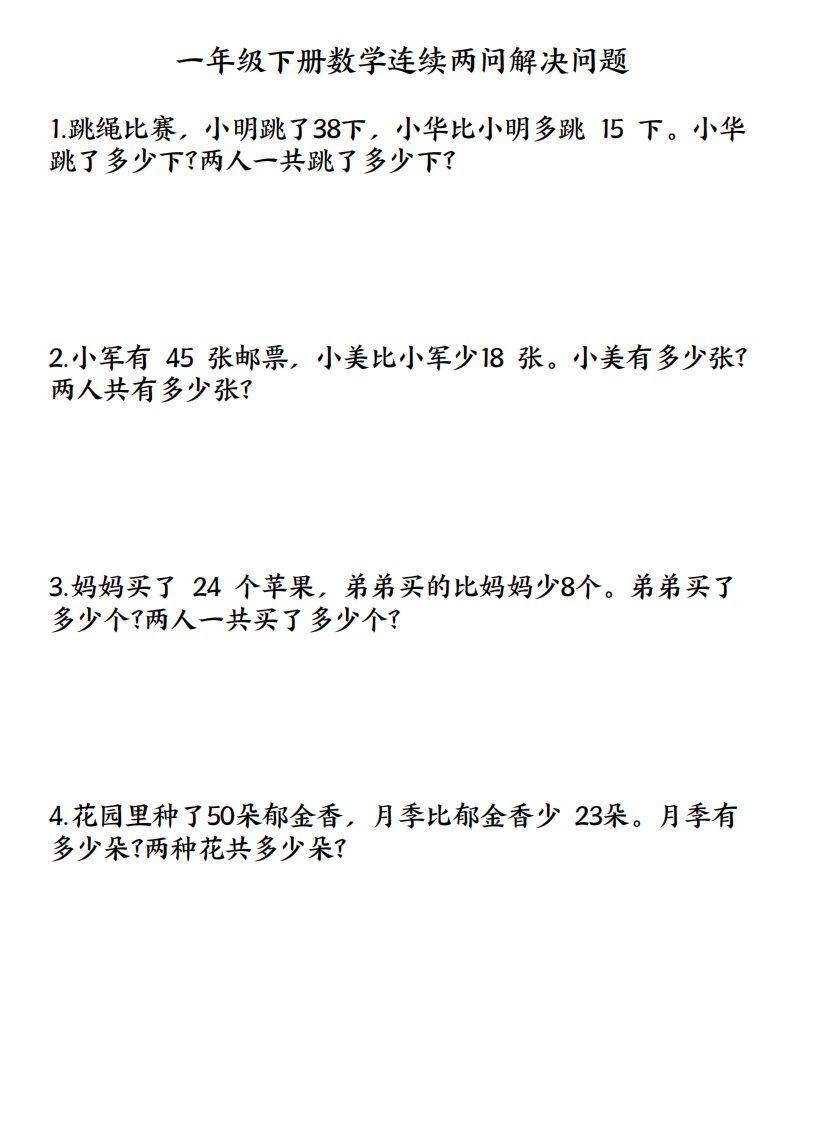 一下数学连续两问解决问题专项练习4页_共4页