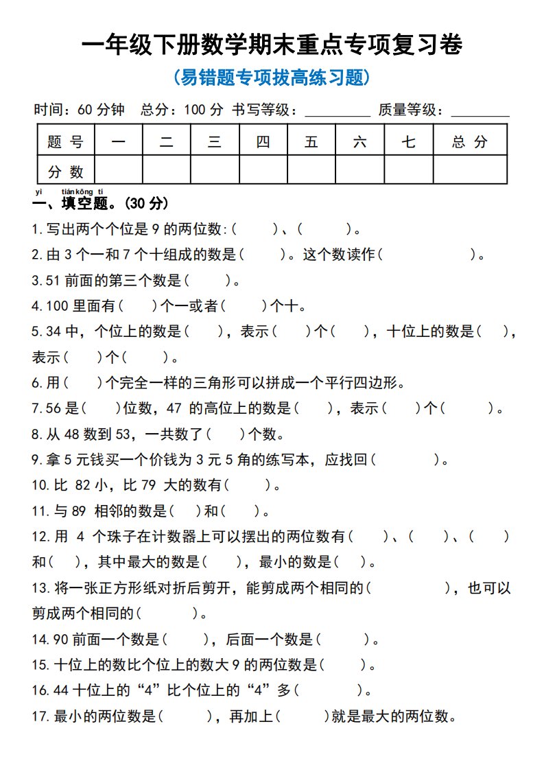 当前位置: 首页小学资源小学一年级正文 一年级下册数学期末重点专项复习卷_共5页 小学一年级 2 周前 0 0 5 以上为部分内容预览,如需源文档请登录您的会员账号进行下载! 声明:本站所有文章,如无特殊说明或标注,均为本站原创发布。任何个人或组织,在未征得本站同意时,禁止复制、盗用、采集、发布本站内容到任何网站、书籍等各类媒体平台。如若本站内容侵犯了原著者的合法权益,可联系我们进行处理。 尚学资源永久会员 打赏 收藏 海报 链接