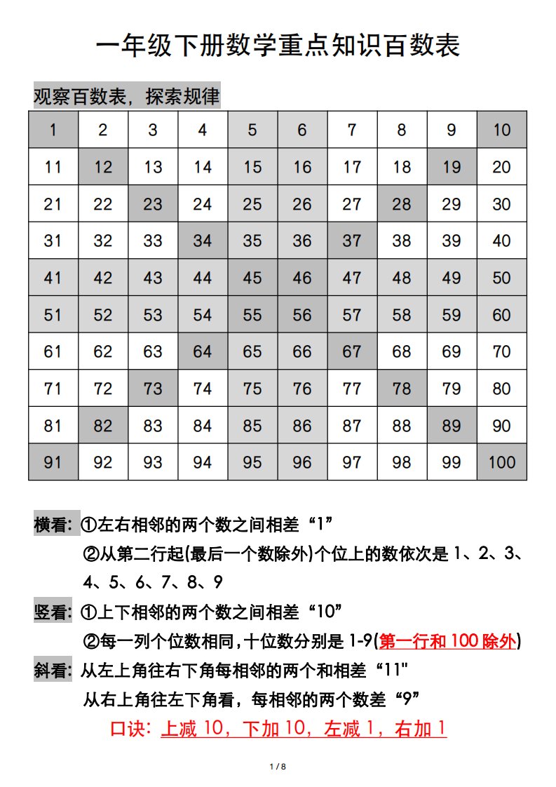 当前位置: 首页小学资源小学一年级正文 一年级下册数学重点知识百数表_共6页 小学一年级 2 周前 0 0 5 以上为部分内容预览,如需源文档请登录您的会员账号进行下载! 声明:本站所有文章,如无特殊说明或标注,均为本站原创发布。任何个人或组织,在未征得本站同意时,禁止复制、盗用、采集、发布本站内容到任何网站、书籍等各类媒体平台。如若本站内容侵犯了原著者的合法权益,可联系我们进行处理。 尚学资源永久会员 打赏 收藏 海报 链接