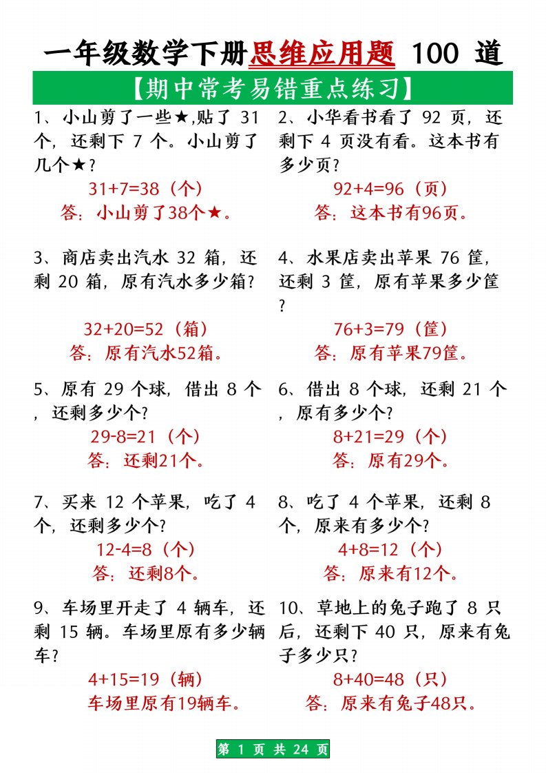 当前位置: 首页小学资源小学一年级正文 一年级数学下册思维应用题大全100道_(含答案)扫描版1_共24页 小学一年级 2 周前 0 0 15 以上为部分内容预览,如需源文档请登录您的会员账号进行下载! 声明:本站所有文章,如无特殊说明或标注,均为本站原创发布。任何个人或组织,在未征得本站同意时,禁止复制、盗用、采集、发布本站内容到任何网站、书籍等各类媒体平台。如若本站内容侵犯了原著者的合法权益,可联系我们进行处理。 尚学资源永久会员 打赏 收藏 海报 链接