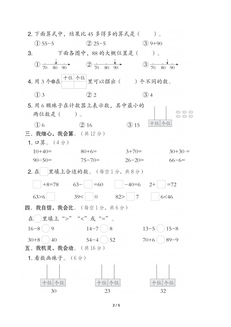 25春北师大版一年级下册数学第三单元《20以内数与减法》测试卷(含答案)_共5页