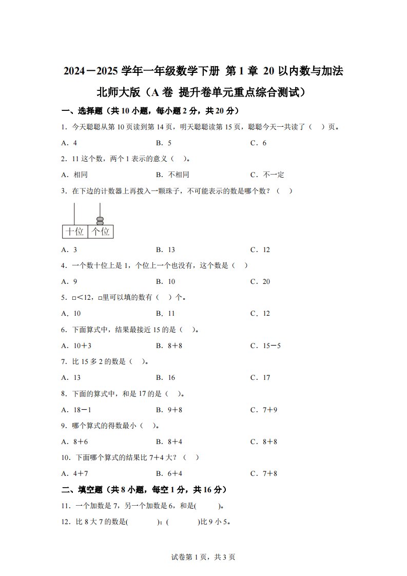 当前位置: 首页小学资源小学一年级正文 北师大版数学一年级下册第一单元《20以内数与加法》重点综合测试卷_共10页 小学一年级 2 周前 0 0 5 以上为部分内容预览,如需源文档请登录您的会员账号进行下载! 声明:本站所有文章,如无特殊说明或标注,均为本站原创发布。任何个人或组织,在未征得本站同意时,禁止复制、盗用、采集、发布本站内容到任何网站、书籍等各类媒体平台。如若本站内容侵犯了原著者的合法权益,可联系我们进行处理。 尚学资源永久会员 打赏 收藏 海报 链接