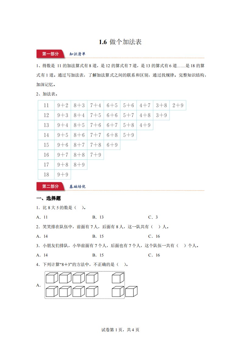 当前位置: 首页小学资源小学一年级正文 北师大版数学一年级下册1-6做个加法表练习卷_共9页 小学一年级 2 周前 0 0 5 以上为部分内容预览,如需源文档请登录您的会员账号进行下载! 声明:本站所有文章,如无特殊说明或标注,均为本站原创发布。任何个人或组织,在未征得本站同意时,禁止复制、盗用、采集、发布本站内容到任何网站、书籍等各类媒体平台。如若本站内容侵犯了原著者的合法权益,可联系我们进行处理。 尚学资源永久会员 打赏 收藏 海报 链接