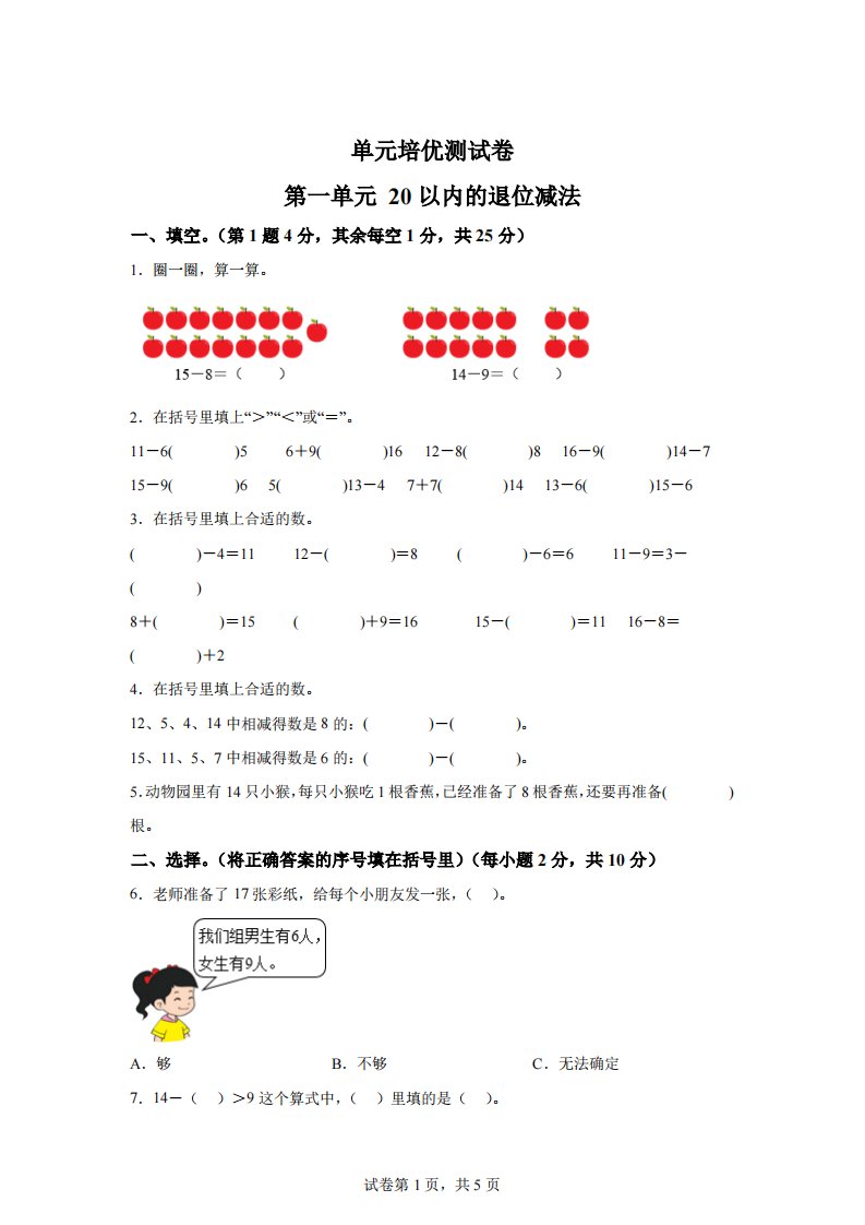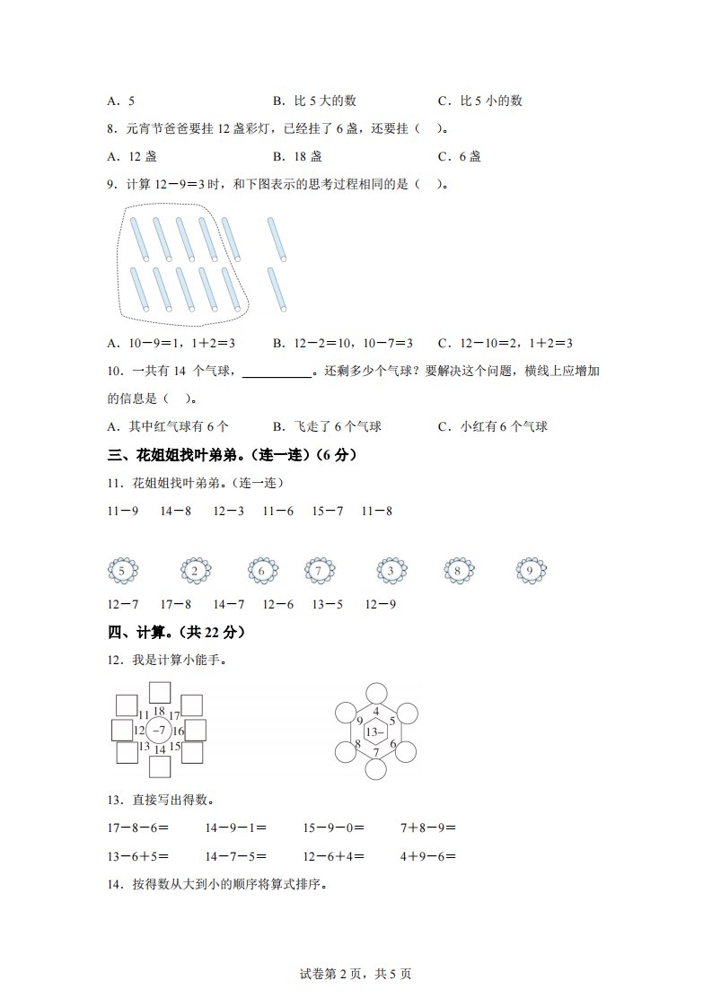 当前位置: 首页小学资源小学一年级正文 青岛63版数学一年级下册第一单元《逛公园——20以内的退位减法》单元测试卷_共13页 小学一年级 2 周前 0 0 10 以上为部分内容预览,如需源文档请登录您的会员账号进行下载! 声明:本站所有文章,如无特殊说明或标注,均为本站原创发布。任何个人或组织,在未征得本站同意时,禁止复制、盗用、采集、发布本站内容到任何网站、书籍等各类媒体平台。如若本站内容侵犯了原著者的合法权益,可联系我们进行处理。 尚学资源永久会员 打赏 收藏 海报 链接