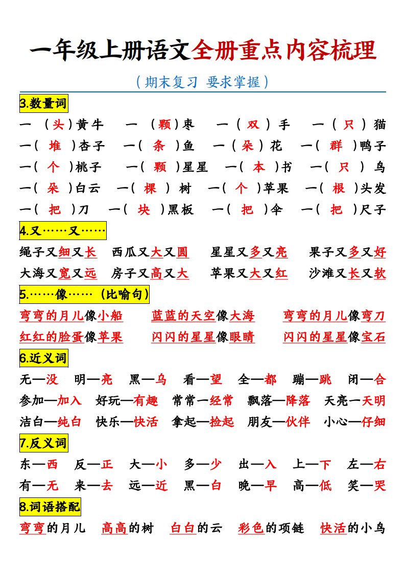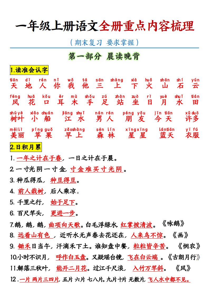 当前位置: 首页小学资源小学一年级正文 【全册重点知识点汇总】一上语文_共7页 小学一年级 2 周前 0 0 5 以上为部分内容预览,如需源文档请登录您的会员账号进行下载! 声明:本站所有文章,如无特殊说明或标注,均为本站原创发布。任何个人或组织,在未征得本站同意时,禁止复制、盗用、采集、发布本站内容到任何网站、书籍等各类媒体平台。如若本站内容侵犯了原著者的合法权益,可联系我们进行处理。 尚学资源永久会员 打赏 收藏 海报 链接