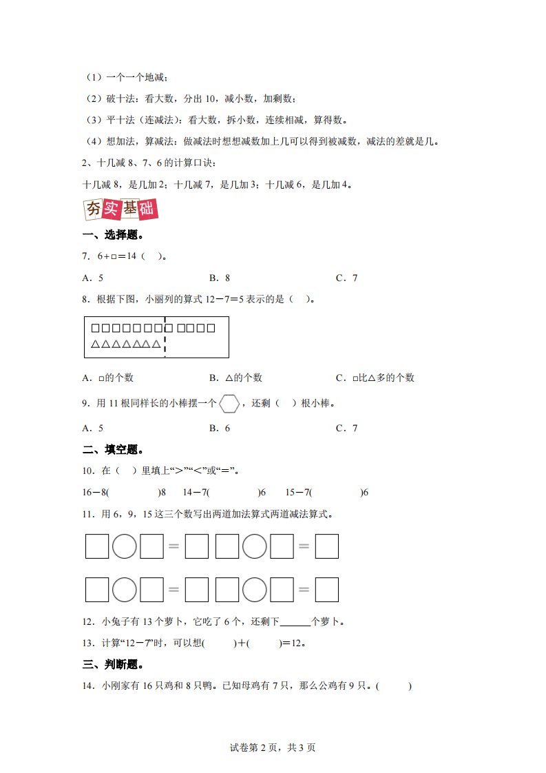 当前位置: 首页小学资源小学一年级正文 人教版数学一年级下册2-2十几减8、7、6练习卷(提升卷)_共8页 小学一年级 2 周前 0 0 5 以上为部分内容预览,如需源文档请登录您的会员账号进行下载! 声明:本站所有文章,如无特殊说明或标注,均为本站原创发布。任何个人或组织,在未征得本站同意时,禁止复制、盗用、采集、发布本站内容到任何网站、书籍等各类媒体平台。如若本站内容侵犯了原著者的合法权益,可联系我们进行处理。 尚学资源永久会员 打赏 收藏 海报 链接