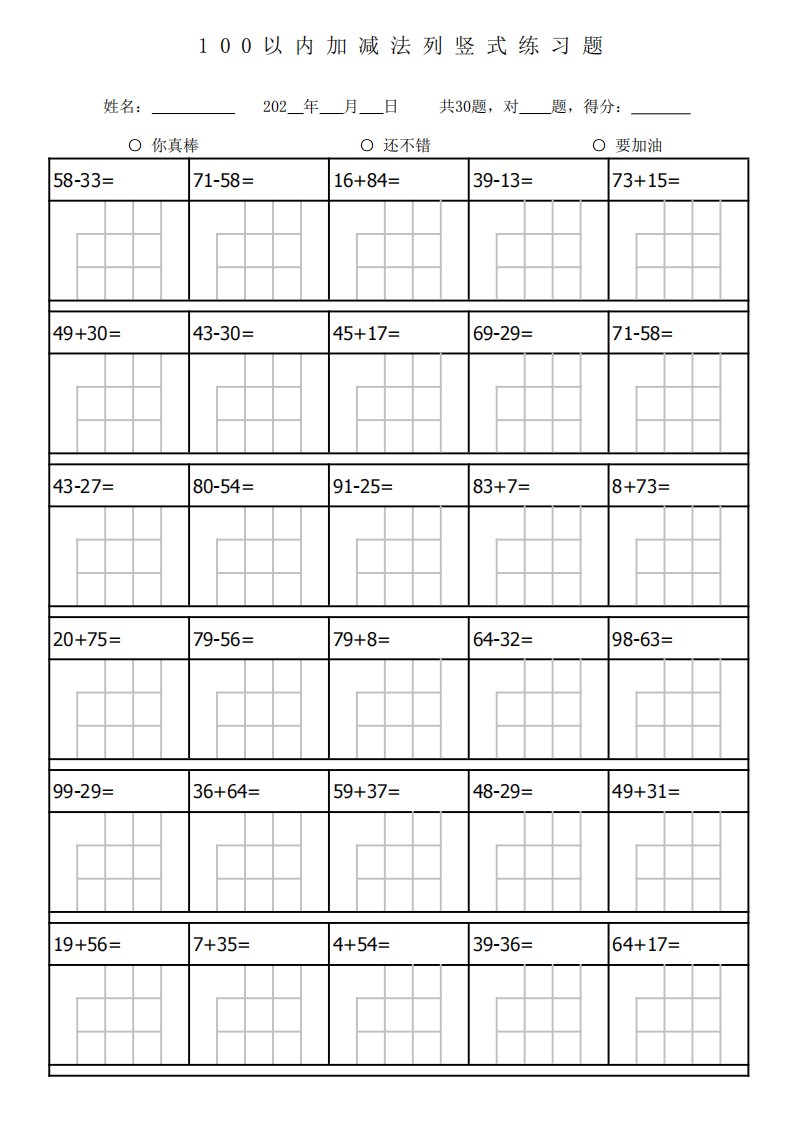 当前位置: 首页小学资源小学一年级正文 一下数学100以内加减法列竖式练习题-3180题_共106页 小学一年级 2 周前 0 0 15 以上为部分内容预览,如需源文档请登录您的会员账号进行下载! 声明:本站所有文章,如无特殊说明或标注,均为本站原创发布。任何个人或组织,在未征得本站同意时,禁止复制、盗用、采集、发布本站内容到任何网站、书籍等各类媒体平台。如若本站内容侵犯了原著者的合法权益,可联系我们进行处理。 尚学资源永久会员 打赏 收藏 海报 链接