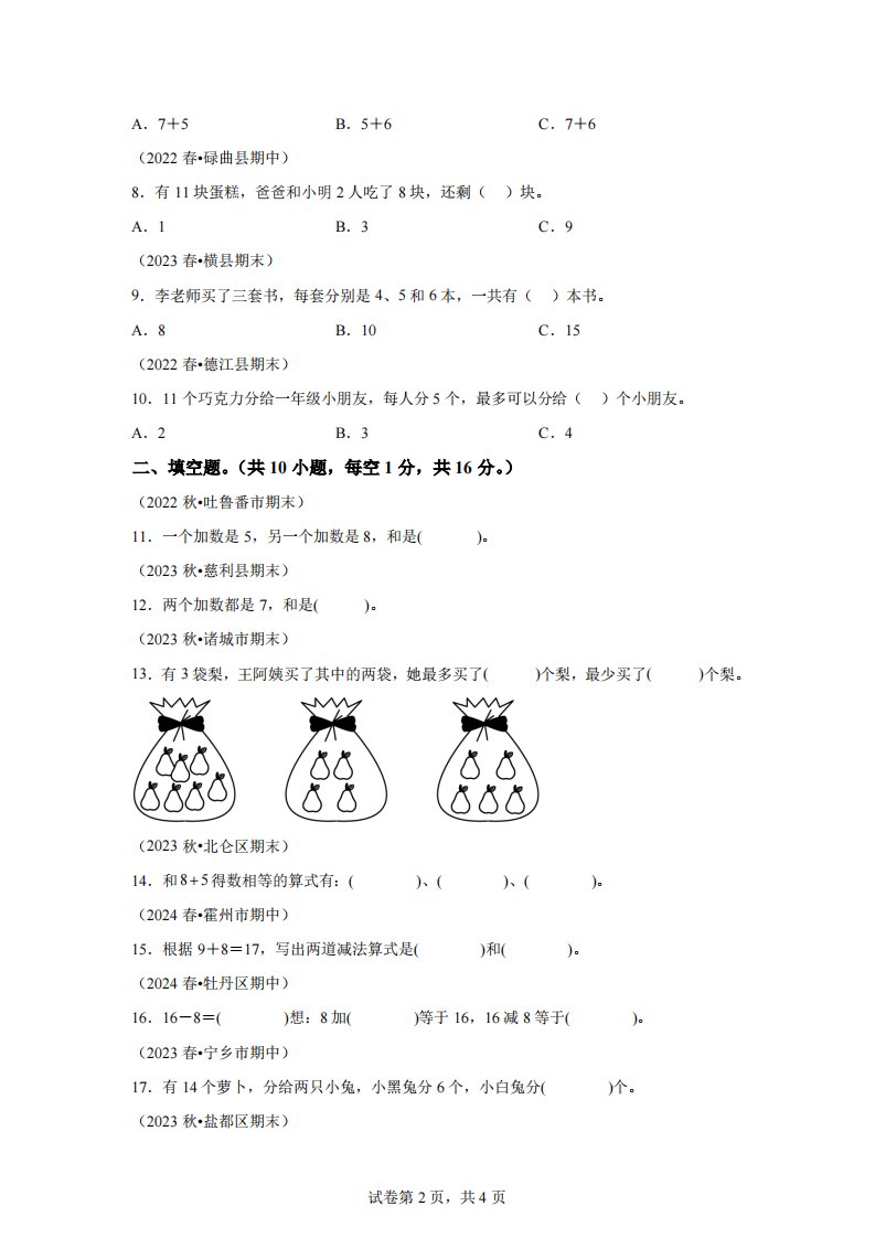 当前位置: 首页小学资源小学一年级正文 苏教版数学一年级下册第一单元《进位加法和退位减法》重点综合测试卷(1)_共11页 小学一年级 2 周前 0 0 10 以上为部分内容预览,如需源文档请登录您的会员账号进行下载! 声明:本站所有文章,如无特殊说明或标注,均为本站原创发布。任何个人或组织,在未征得本站同意时,禁止复制、盗用、采集、发布本站内容到任何网站、书籍等各类媒体平台。如若本站内容侵犯了原著者的合法权益,可联系我们进行处理。 尚学资源永久会员 打赏 收藏 海报 链接