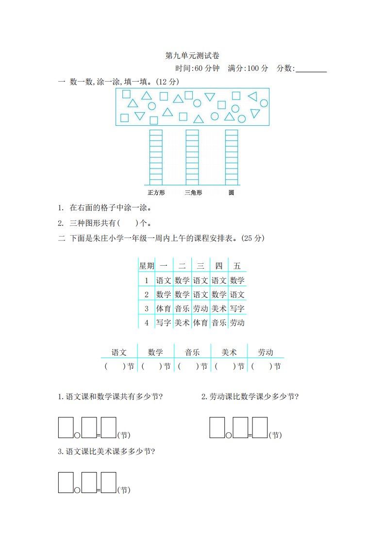 一下青岛版数学第九单元检测卷2(54制)_共4页