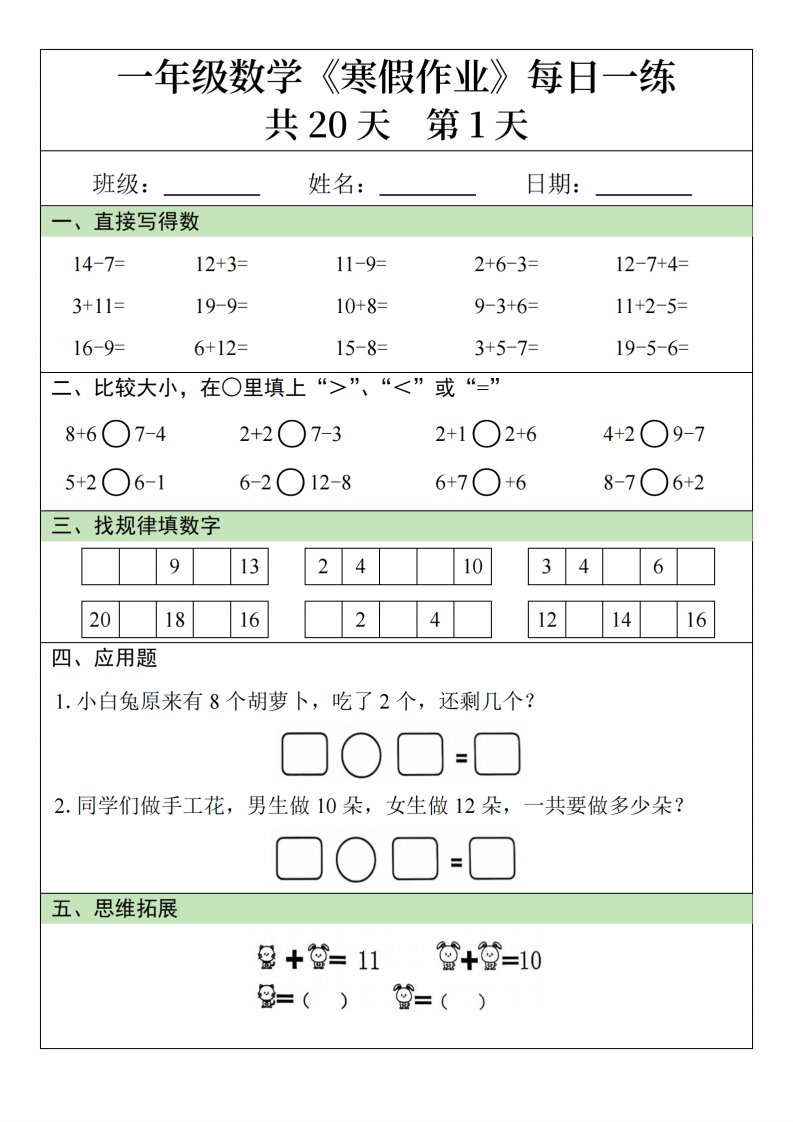 当前位置: 首页小学资源小学一年级正文 一下【数学寒假作业】每日一练20天20页_共20页 小学一年级 2 周前 0 0 10 以上为部分内容预览,如需源文档请登录您的会员账号进行下载! 声明:本站所有文章,如无特殊说明或标注,均为本站原创发布。任何个人或组织,在未征得本站同意时,禁止复制、盗用、采集、发布本站内容到任何网站、书籍等各类媒体平台。如若本站内容侵犯了原著者的合法权益,可联系我们进行处理。 尚学资源永久会员 打赏 收藏 海报 链接